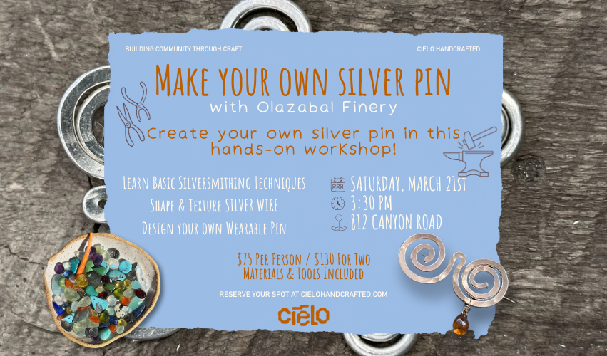 Make your own silver pin in this hands-on workshop guided by Gloria of Olazabal Finery.