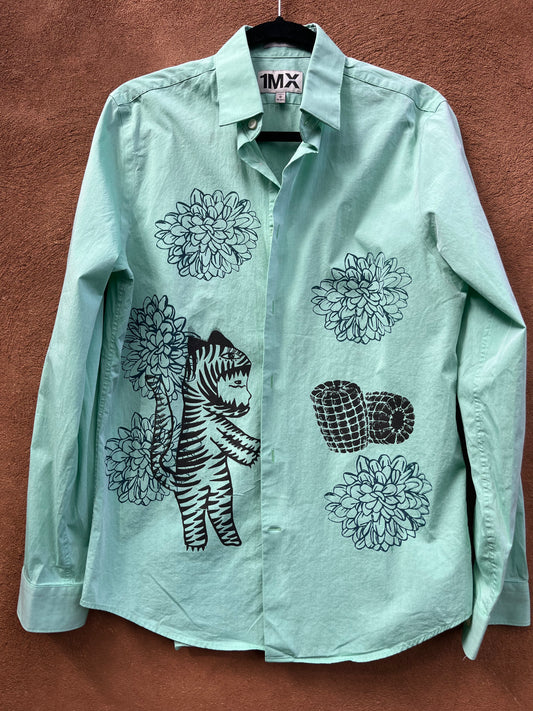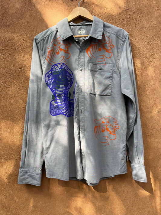 Screenprinted Collared Shirt ~ upcycled ~ Large
