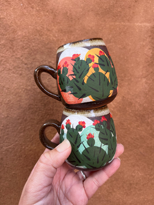 Stoneware espresso mugs ~ hand painted Prickly pear ~ 2 colors