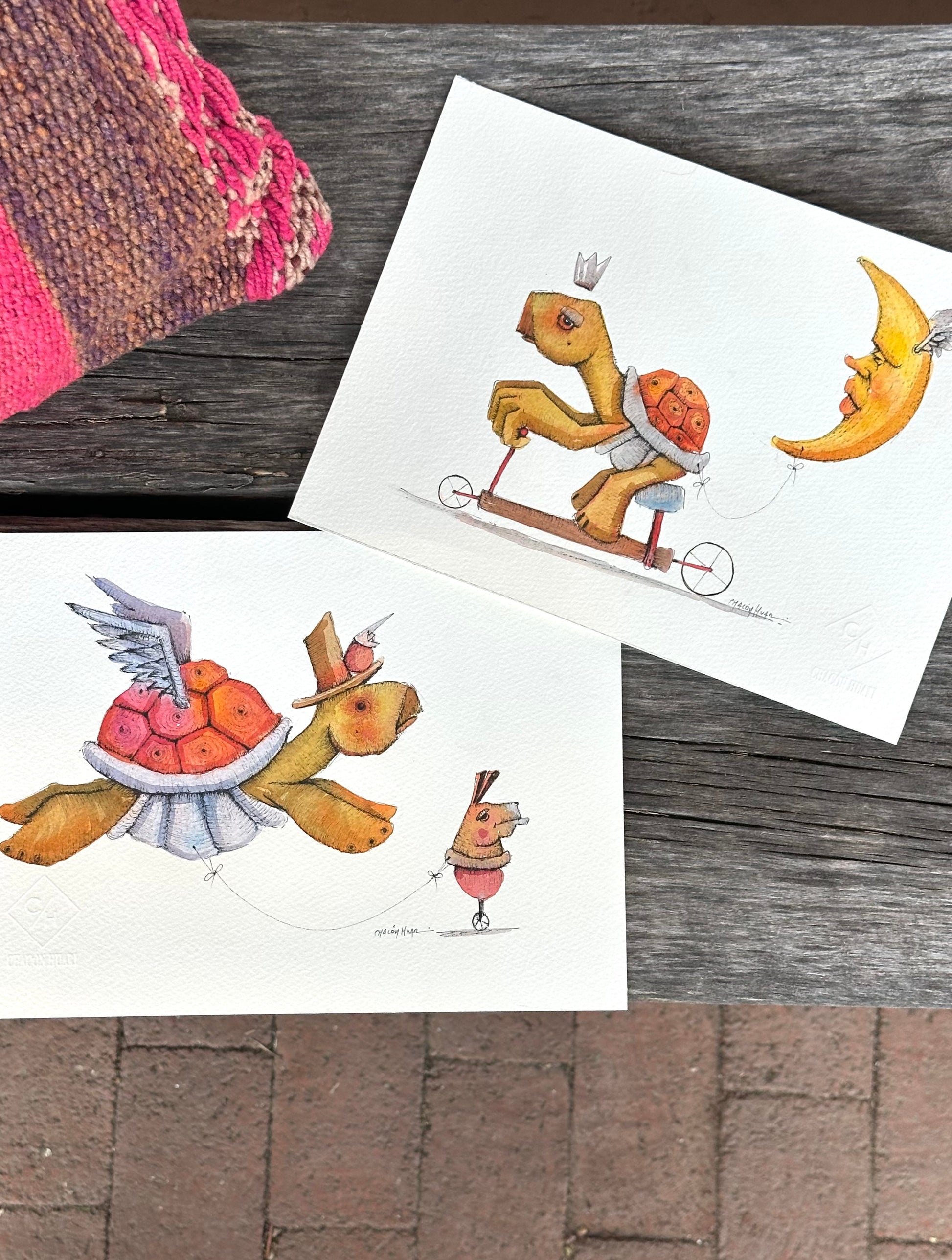 Each piece is sold framed in a solid wood frame 10” by 12” (picture of framed art for reference)