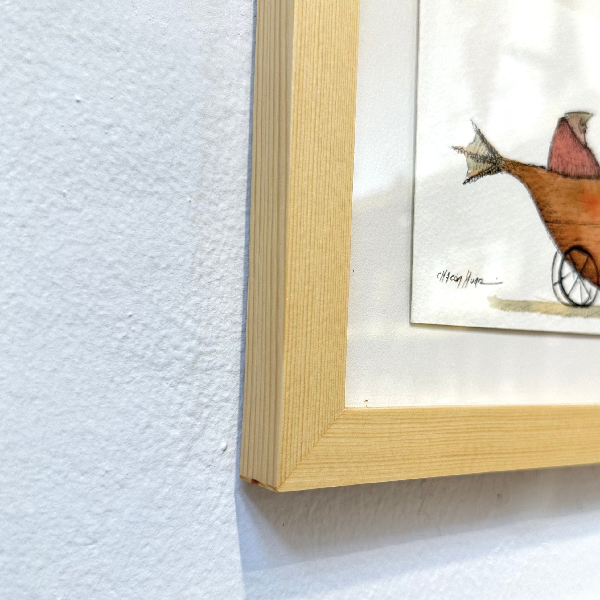 Each piece is sold framed in a solid wood frame 10” by 12” (picture of framed art for reference)