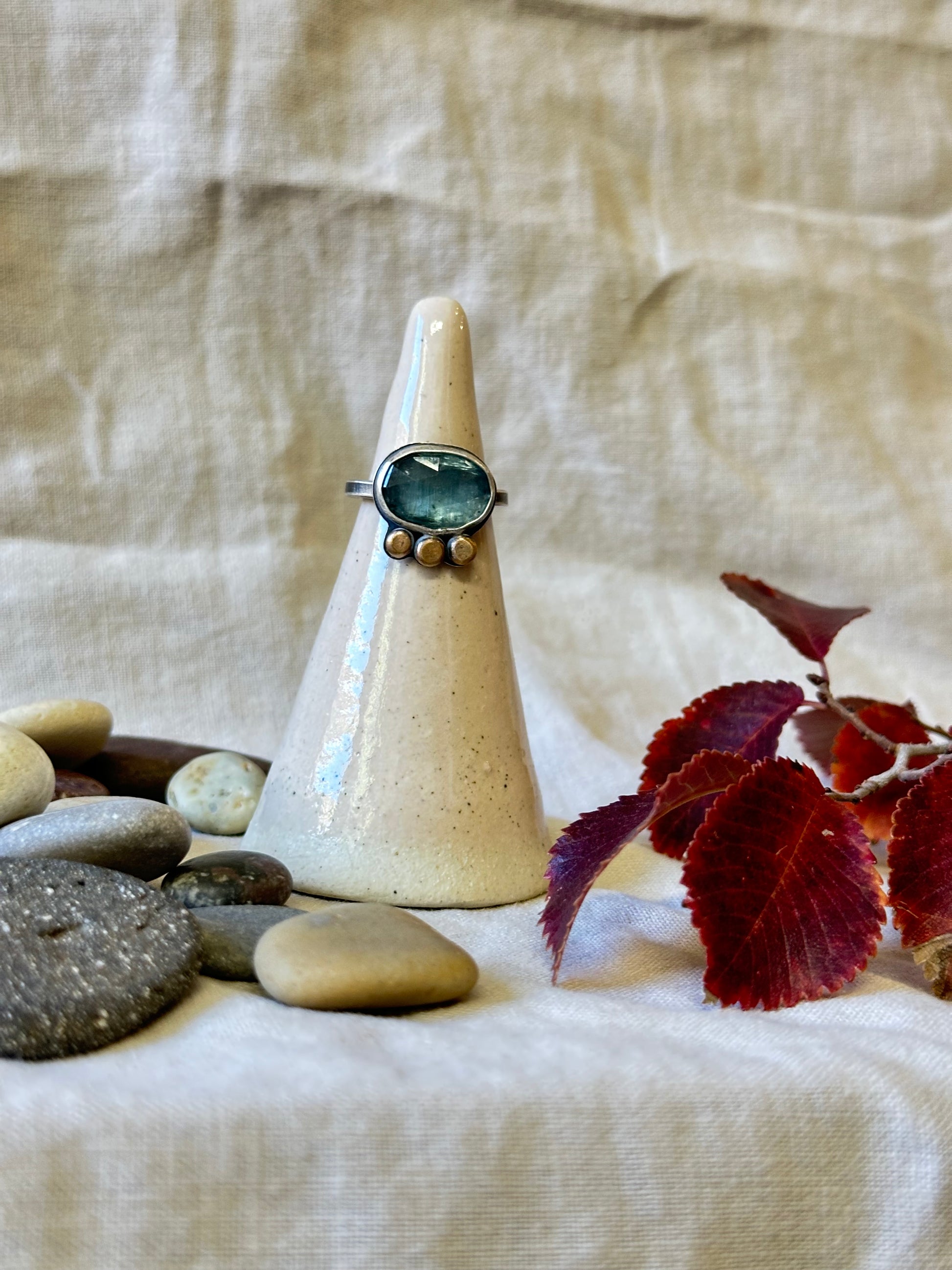 Aqua Kyanite and Sterling Silver Ring ~ Size 6.25