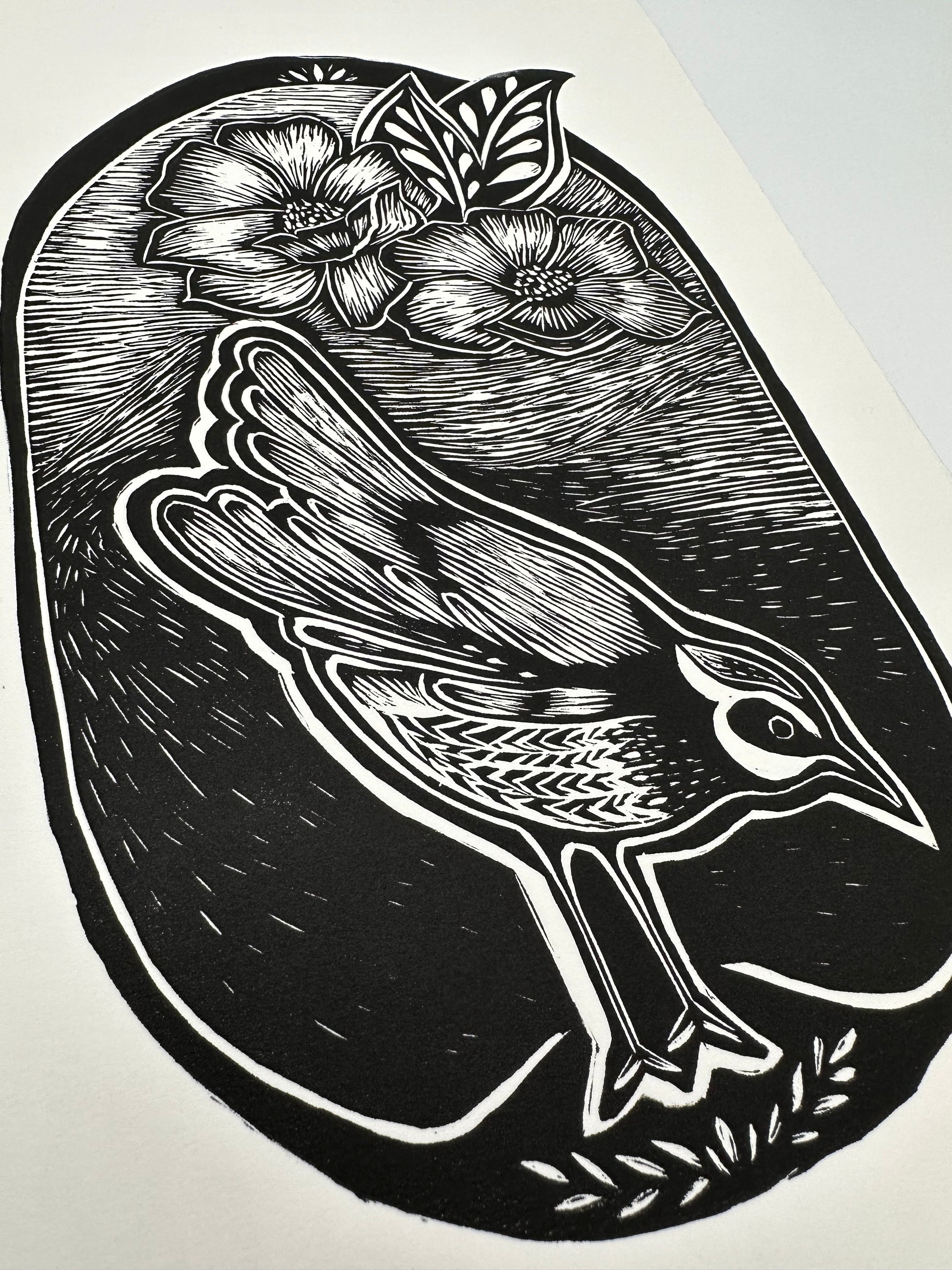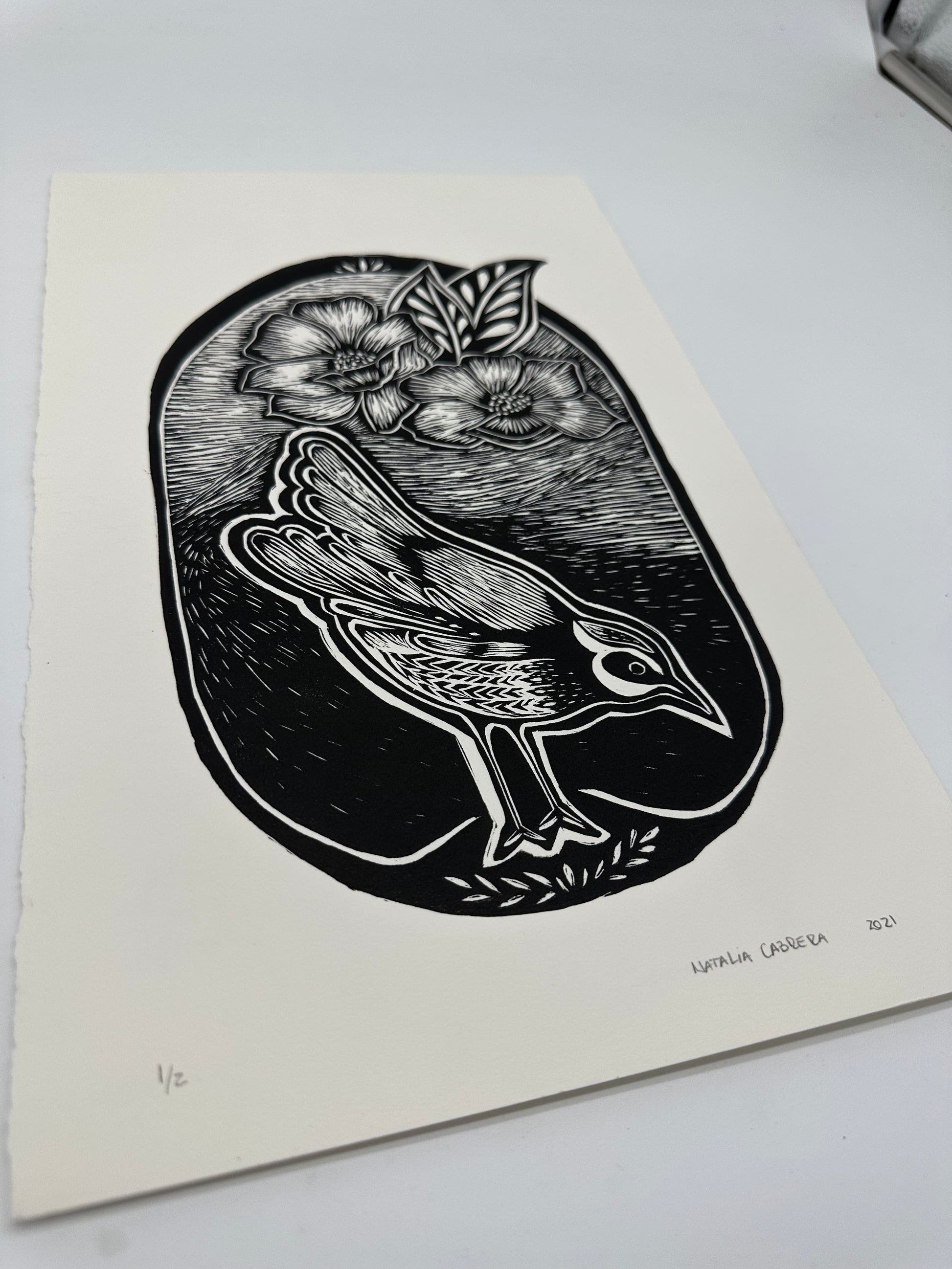Linocut block print by Natalia Cabrera. Chilean artist living in Cusco, Peru.