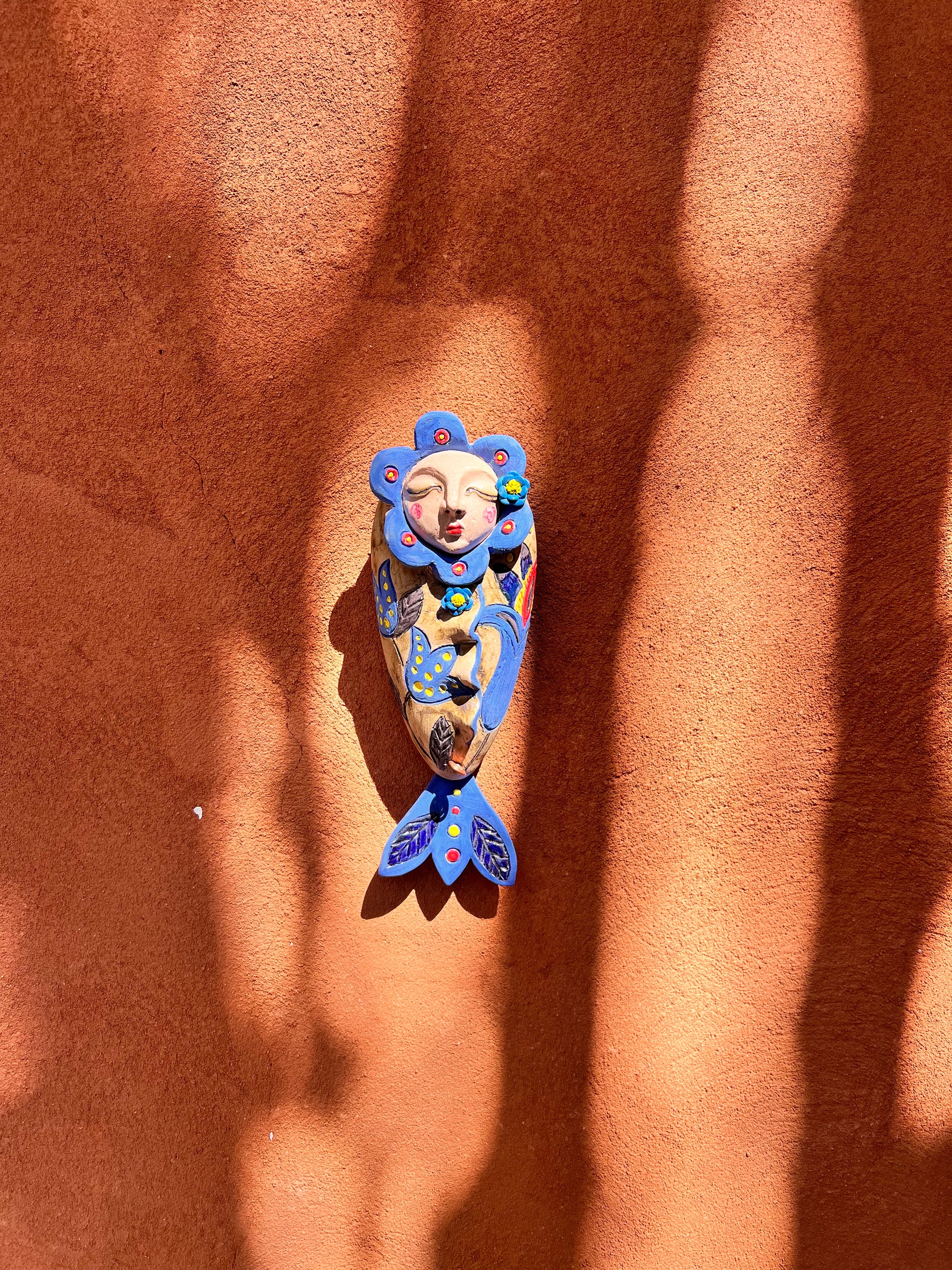 Blue & sand Wawa with fish tail ~ Small ~ art wall sculpture