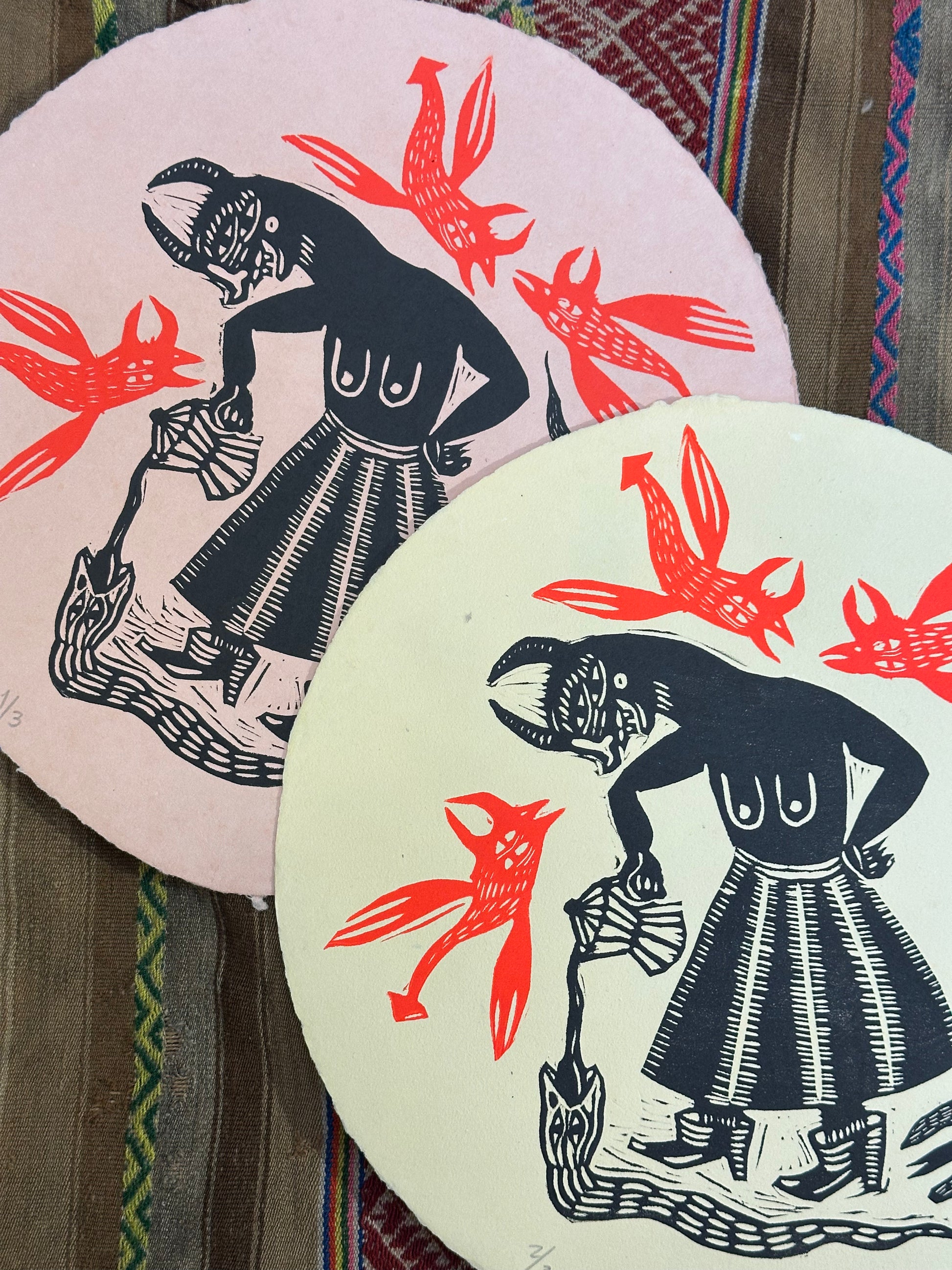 Carla Vaccaro, street muralist, illustrator and printmaker from Santiago Chile.