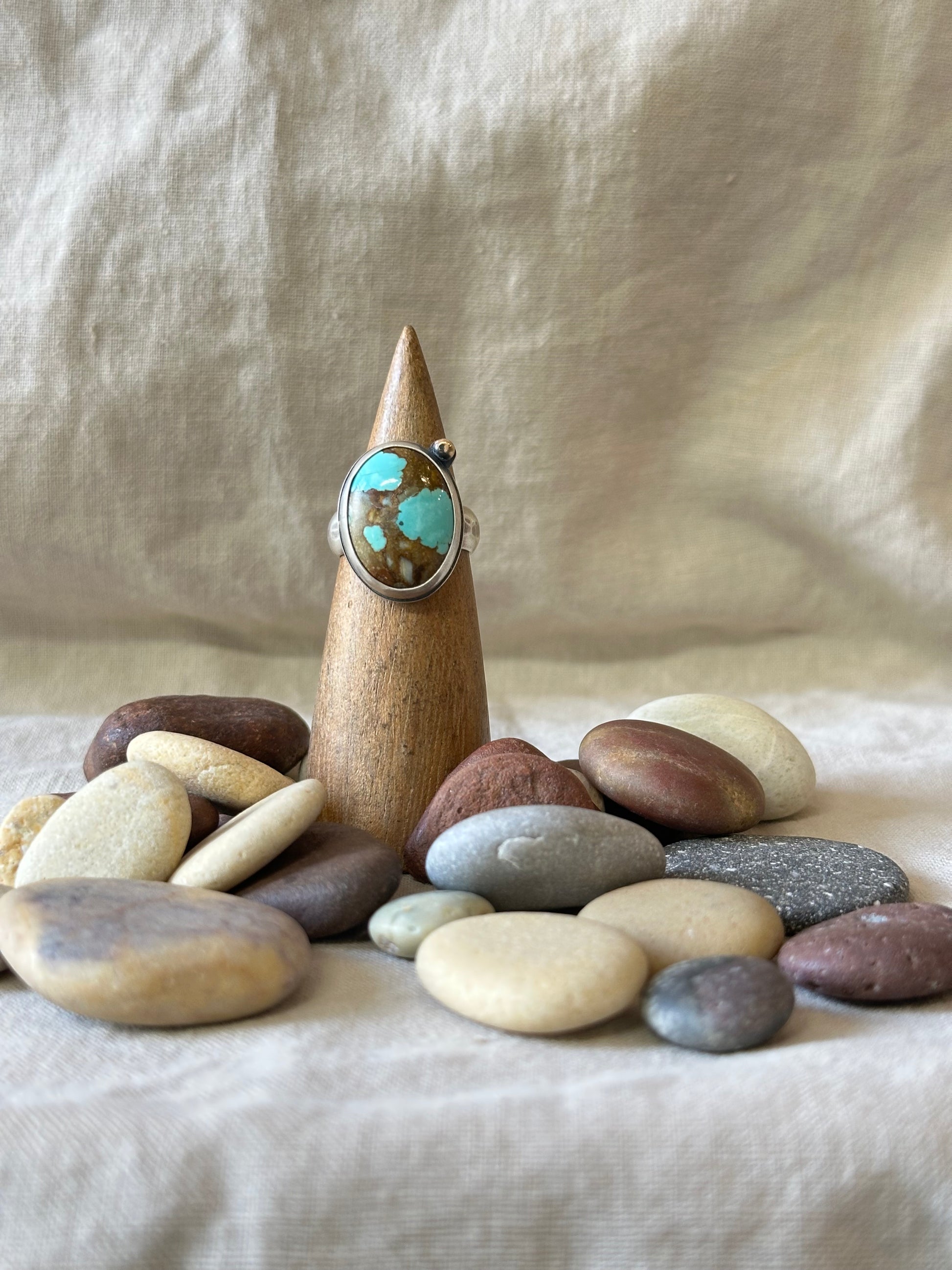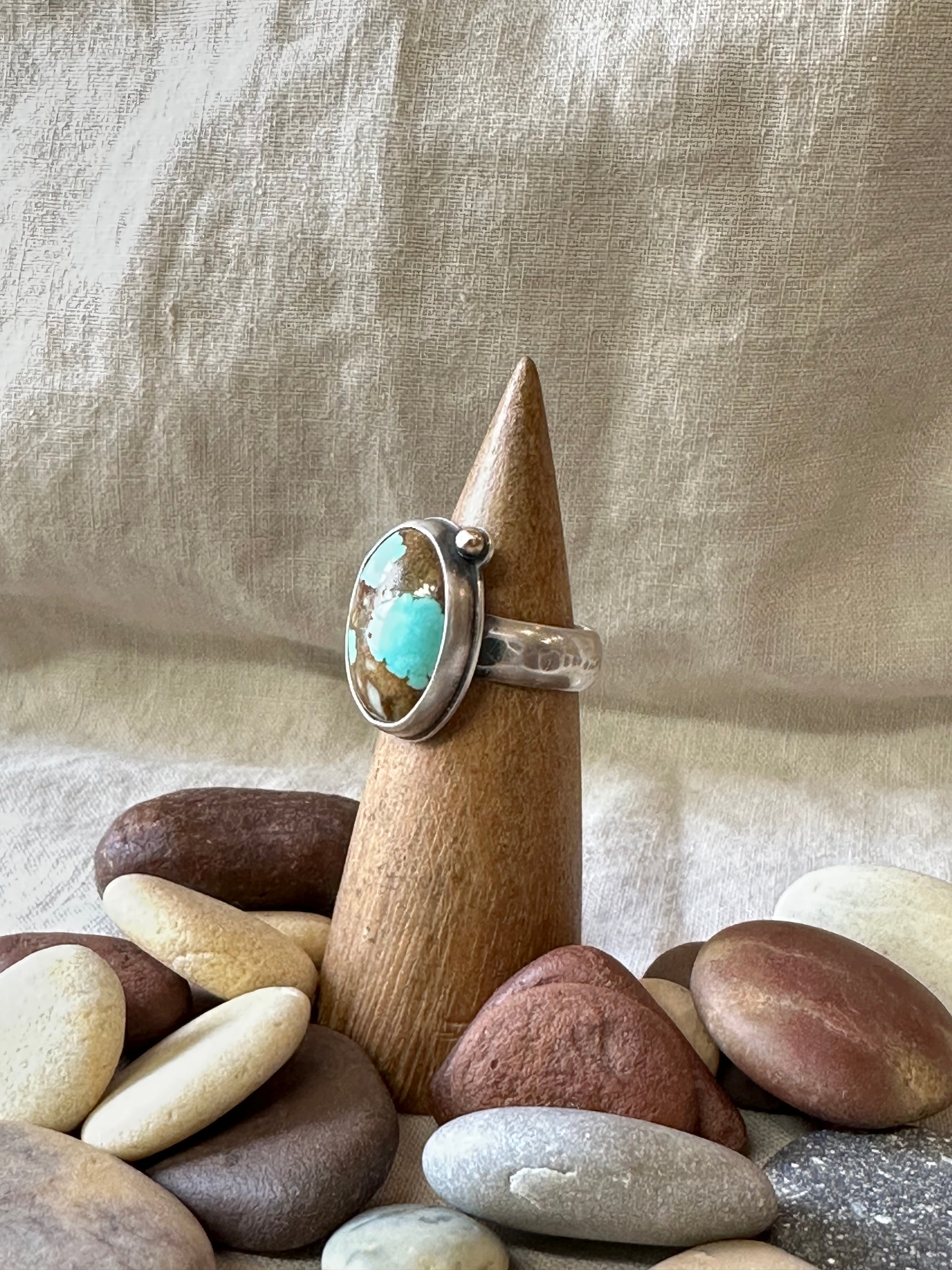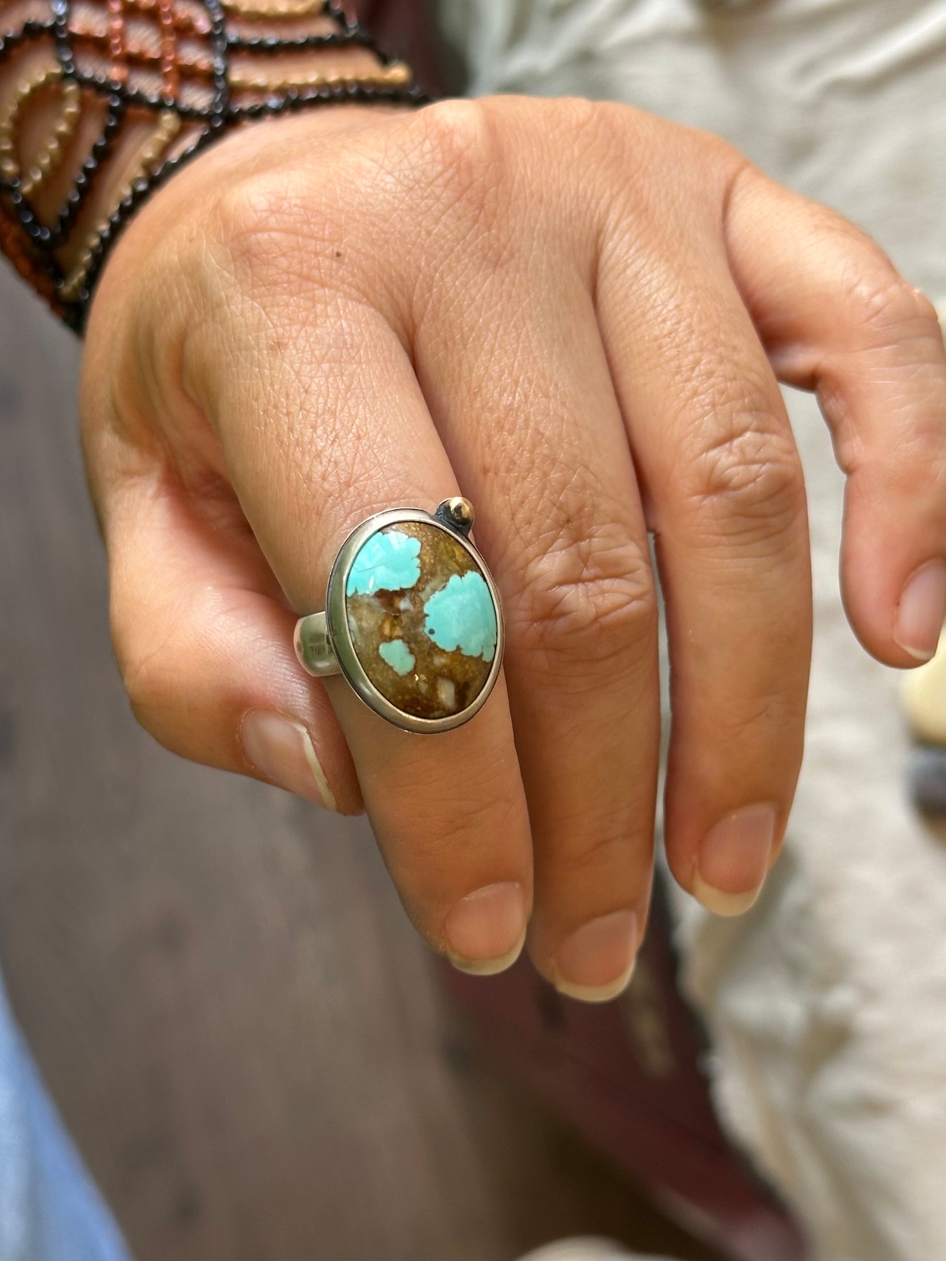 Bubbly Carico Lake Turquoise and Sterling Silver Ring - size 7