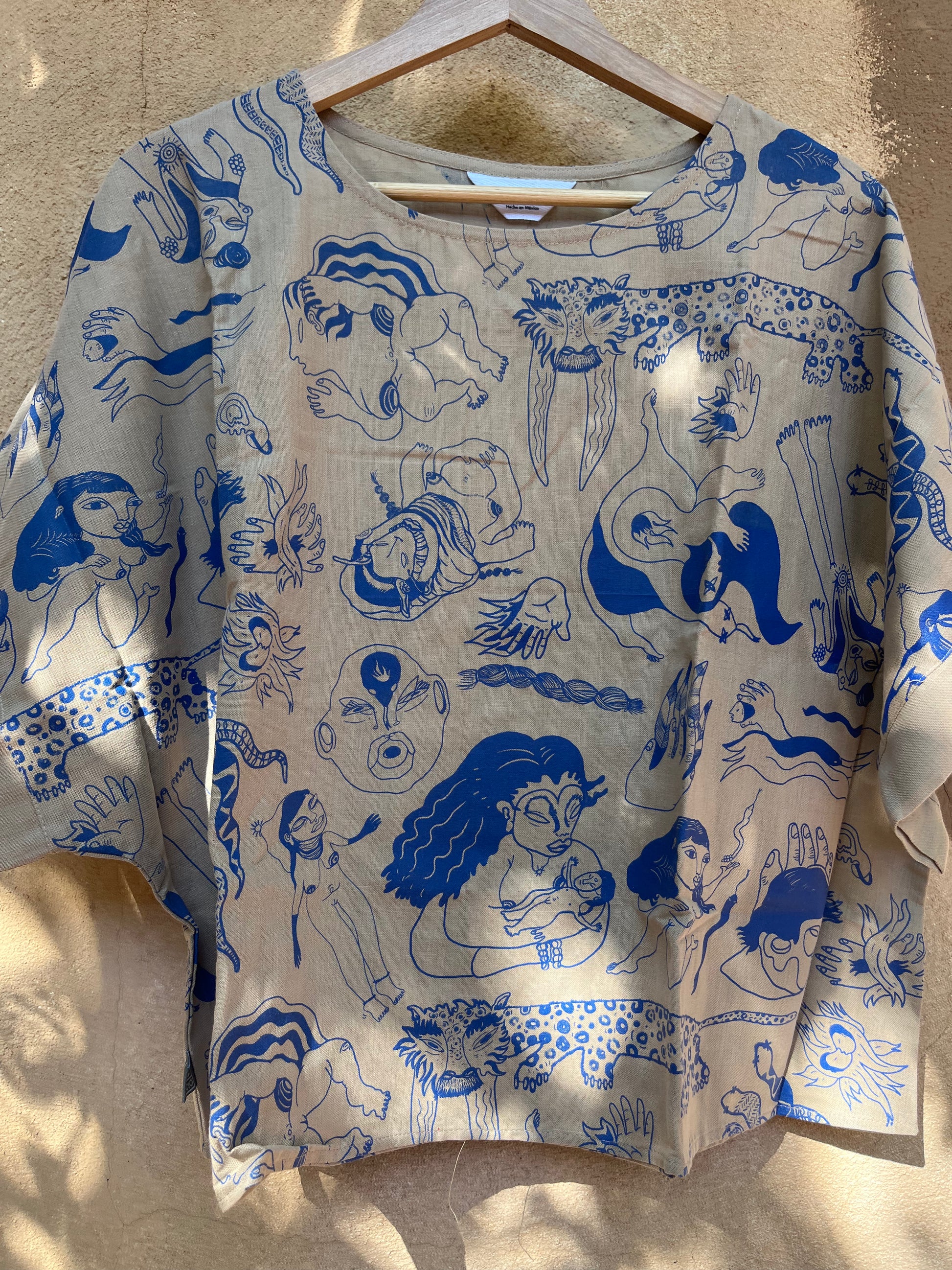 Square cut, hip-length blouse, and wides sleaves