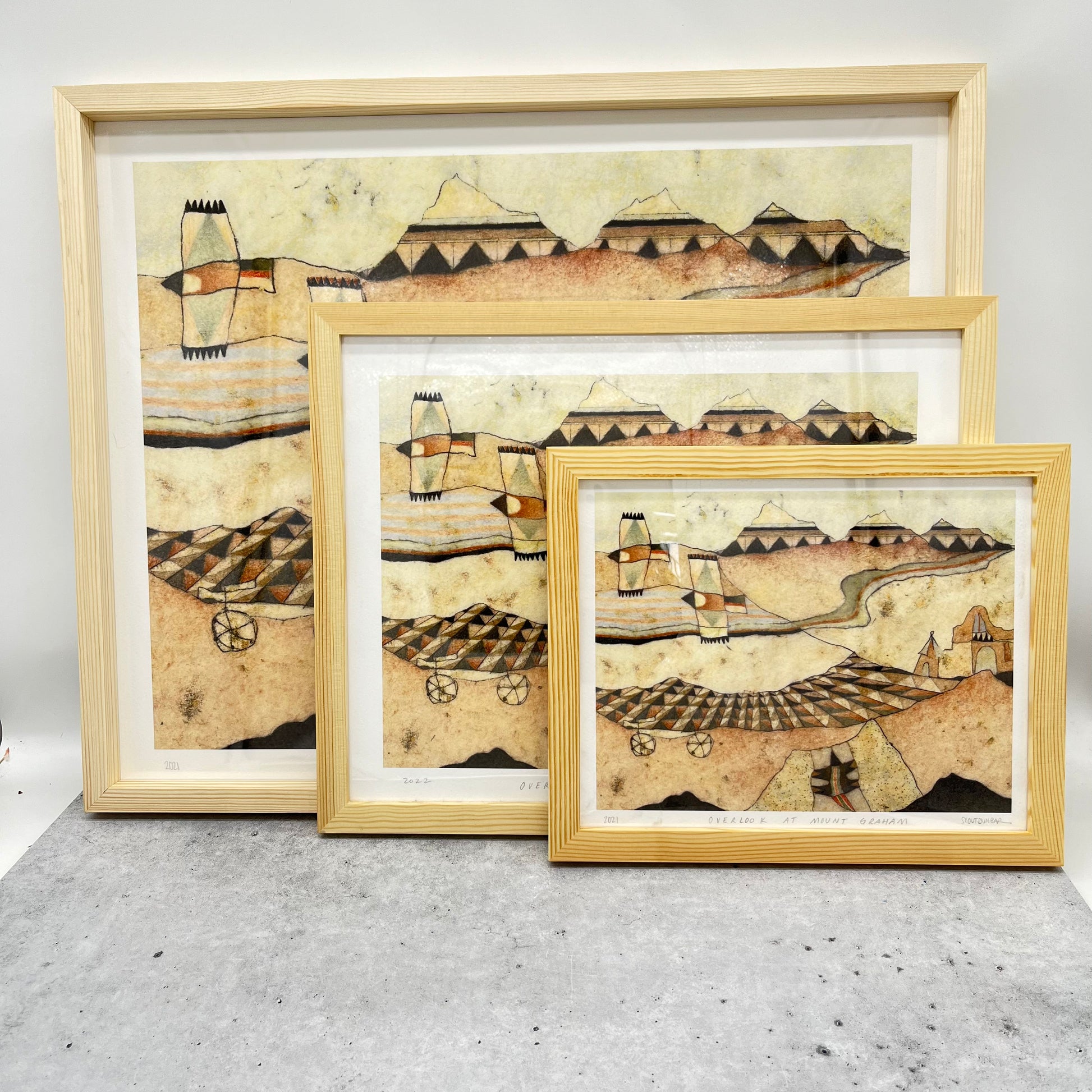 These archival prints are digitally printed using pigment ink on thick, beautifully textured cotton rag paper. They are made to fit into standard sized frames and include an approximate .5”-1” border. They are each signed, titled, and dated.