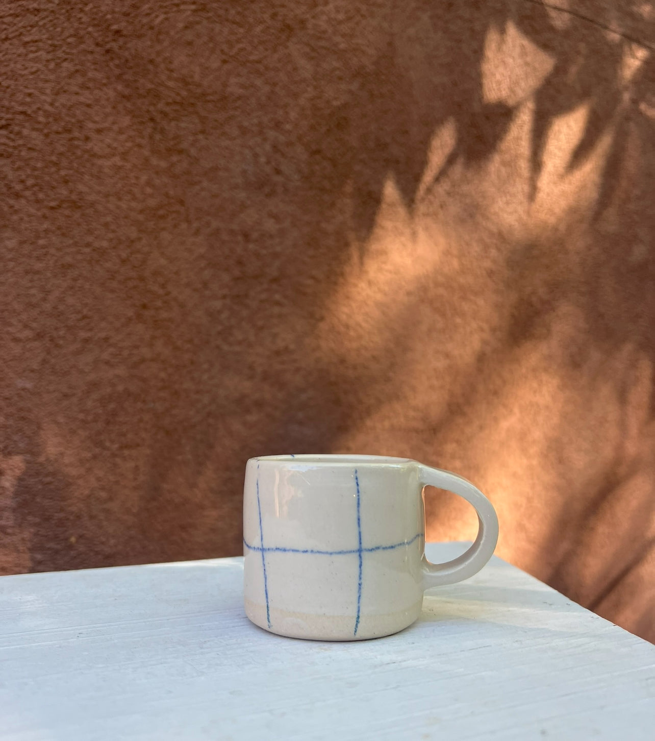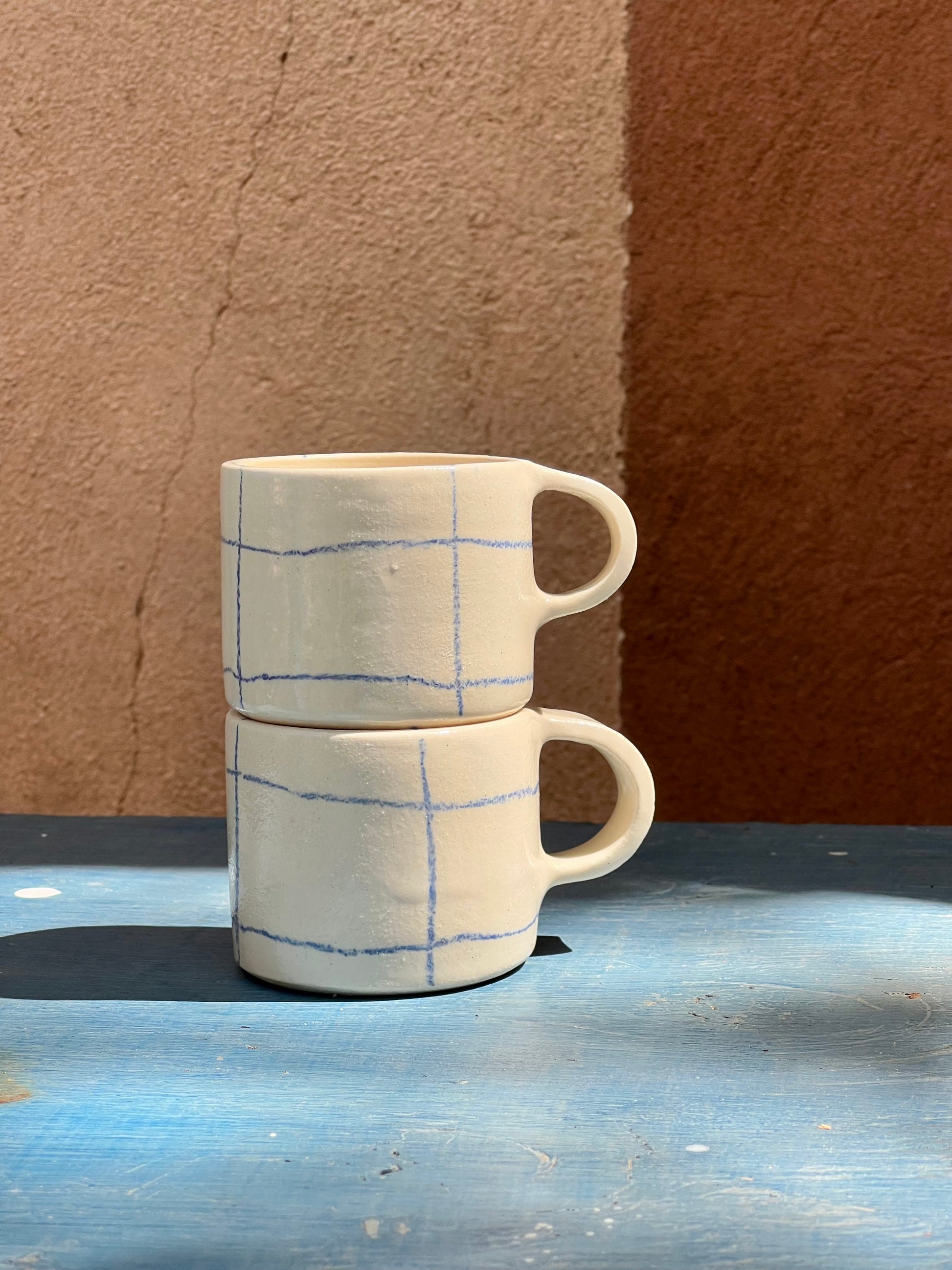Blue lines on porcelain, this mug is a perfect blend of charm and function.