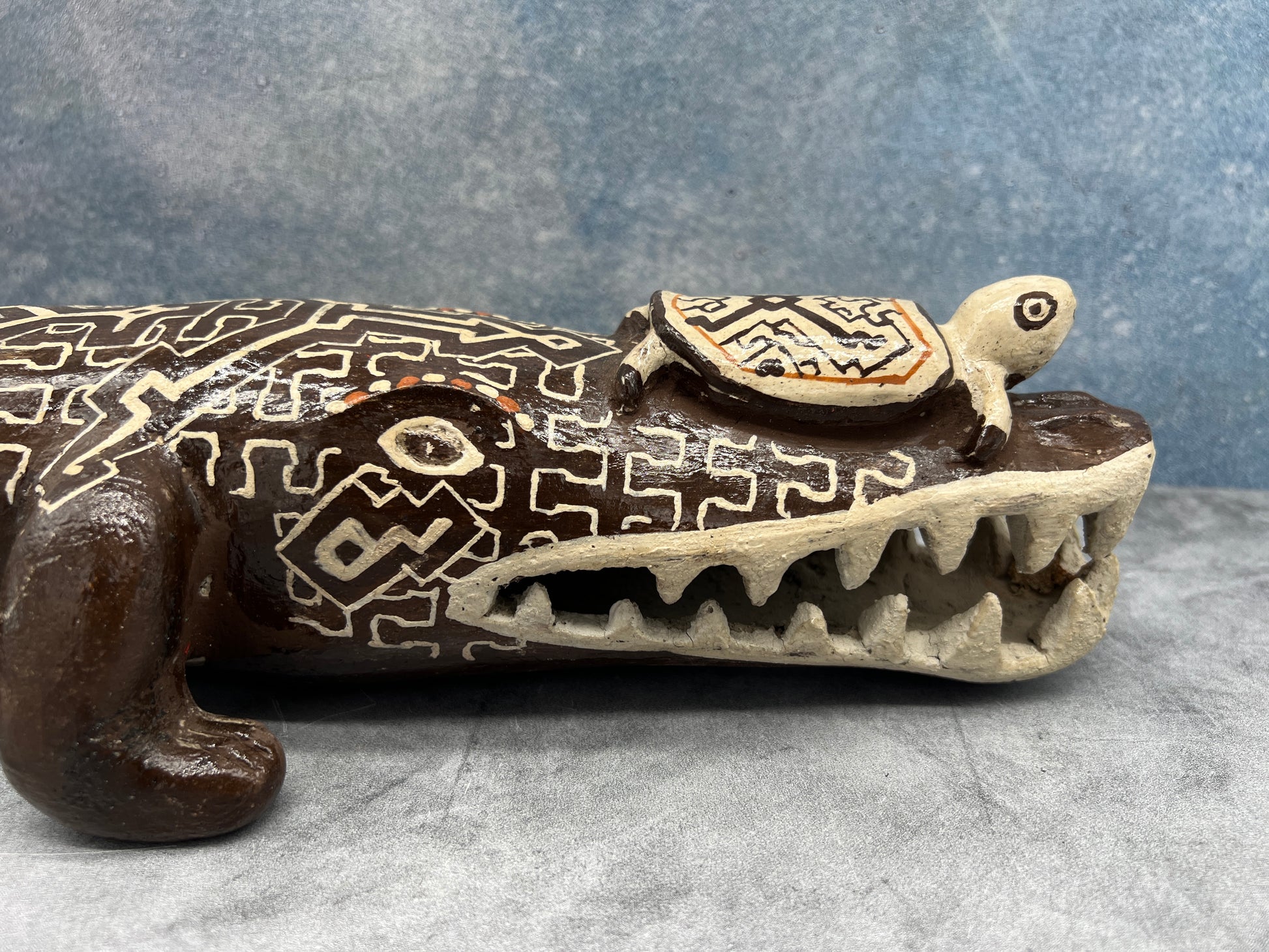 Shipibo Ceramic Cayman w/ Turtle