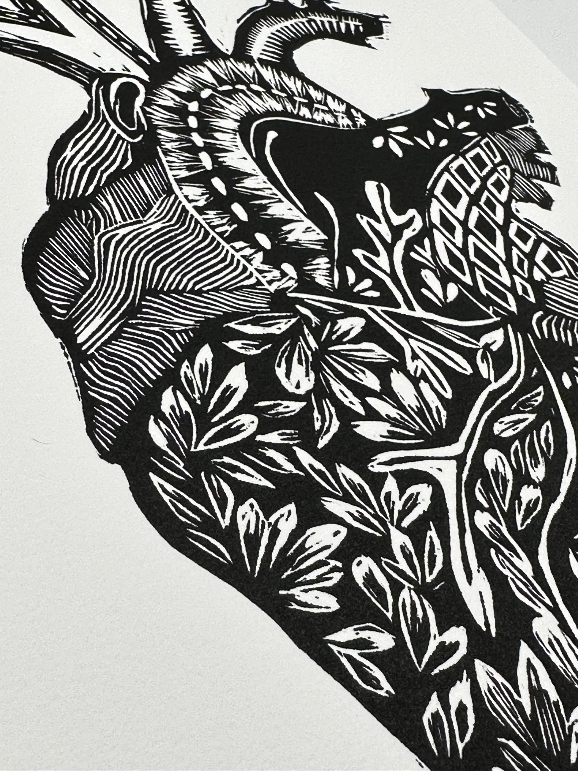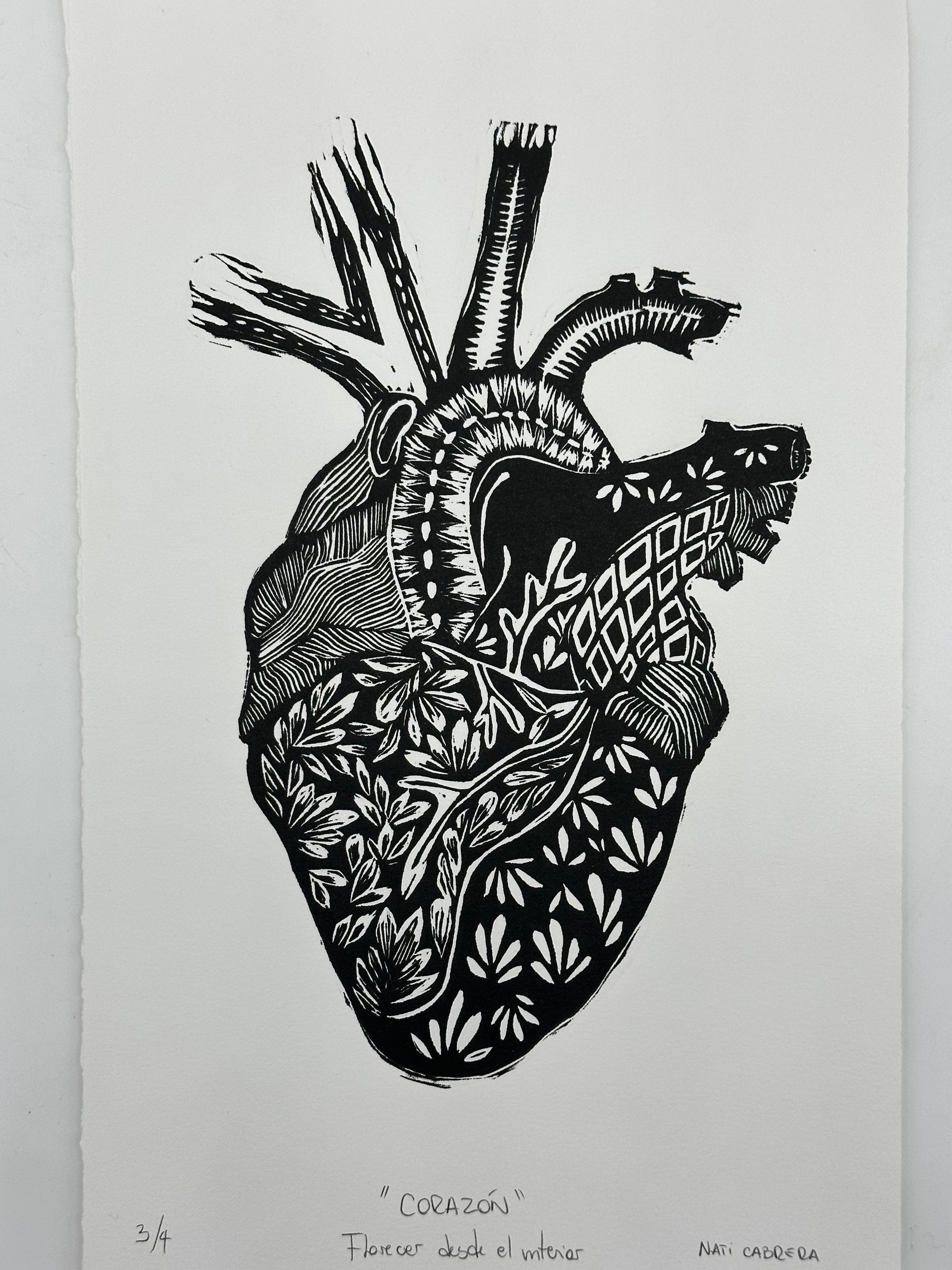 Linocut block print by Natalia Cabrera. Chilean artist living in Cusco, Peru.