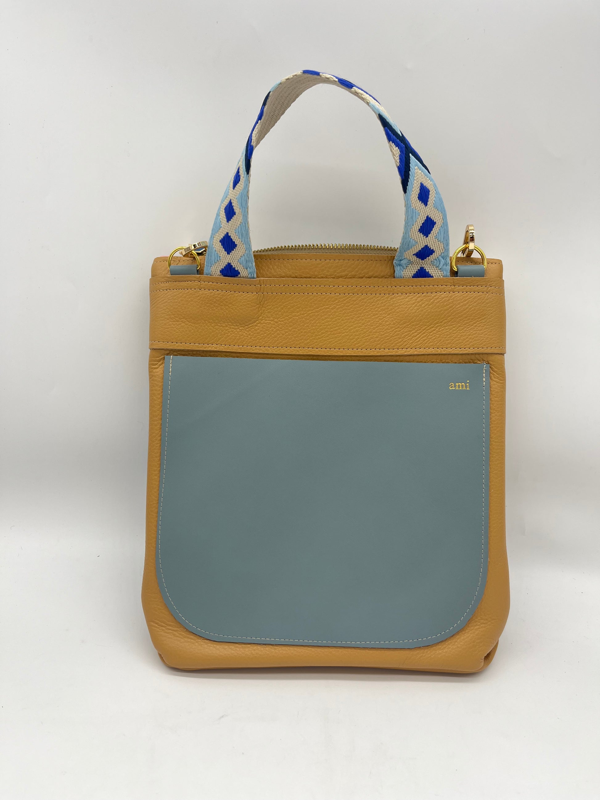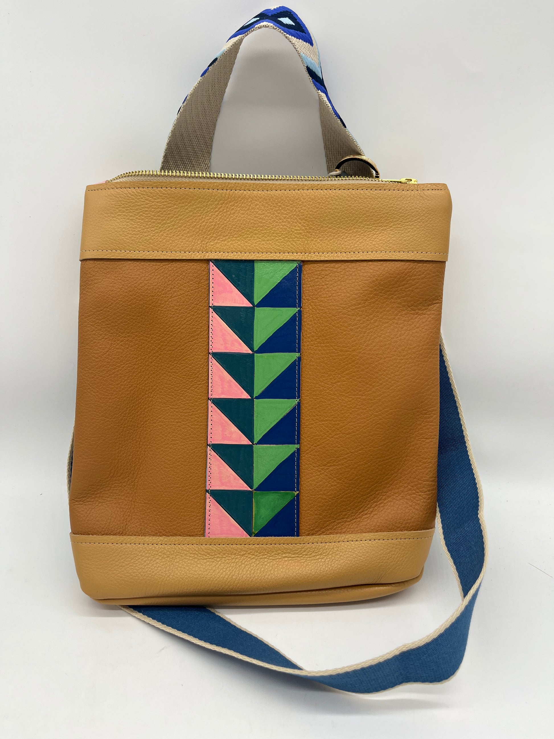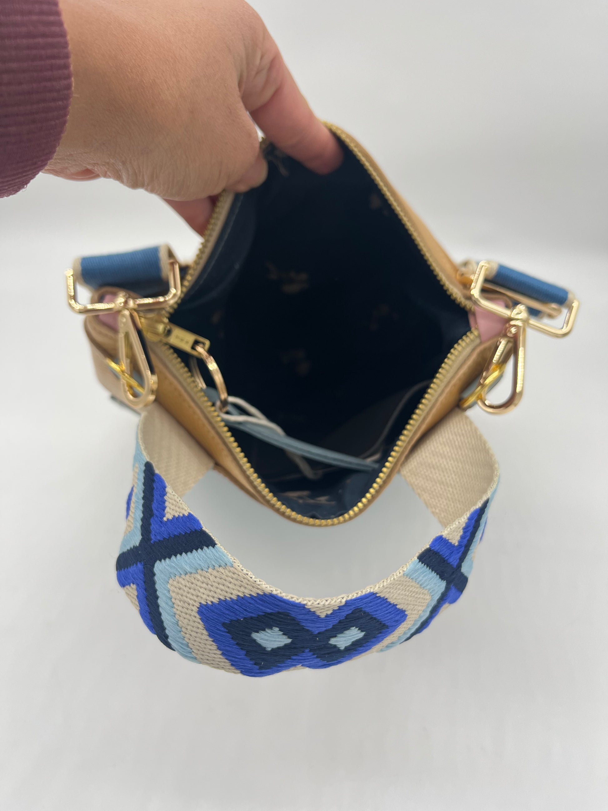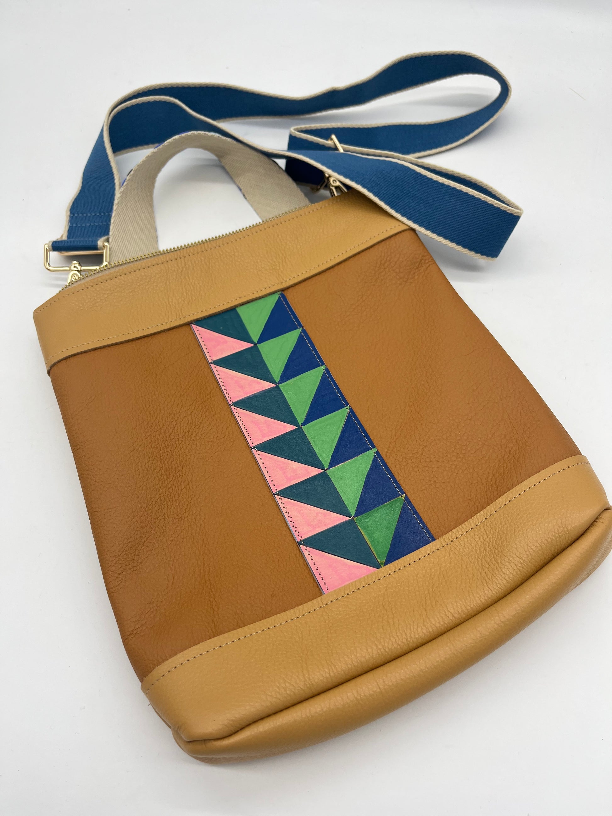 Crossbody Bag with arm strap - Camel and Blue - one of a kind