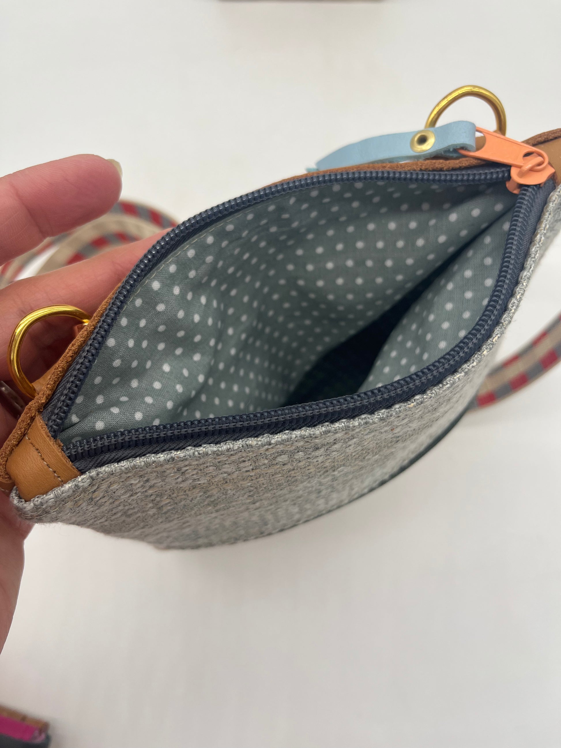 Handmade leather and fabric crossbody bag, design is Clean & Simple.