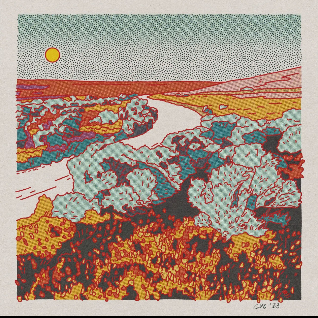 Desert Mountain art print 12 x 12 inch square print. Digitally printed on high quality, pulpy off-white card stock paper. Can be purchased unframed or in a solid wood frame.