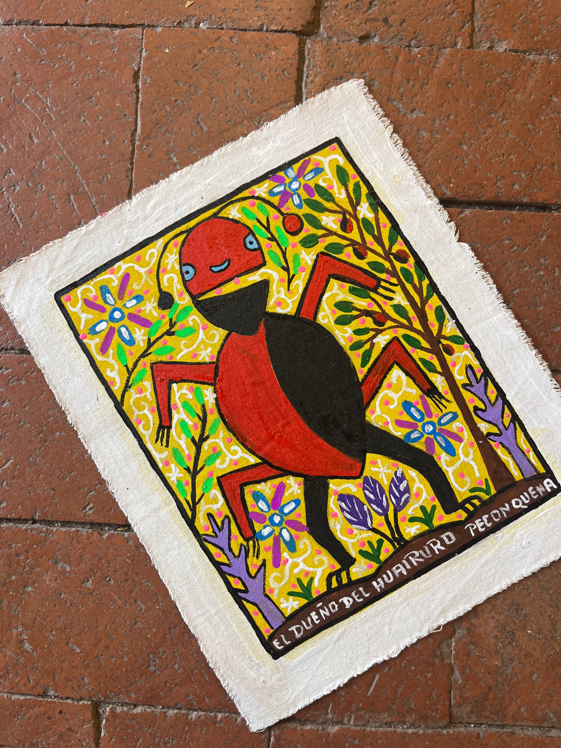 She is gifted with different artistic skills such as ceramics, embroidery, carving, and obviously painting. In all her artistic works she represents animals and plants with their spirits. Called yoshin (an evil spirit) and ibo (a good spirit). Through her paintings Lastenia has a vision to show that each plant and animal has a protector to safeguard the forest.