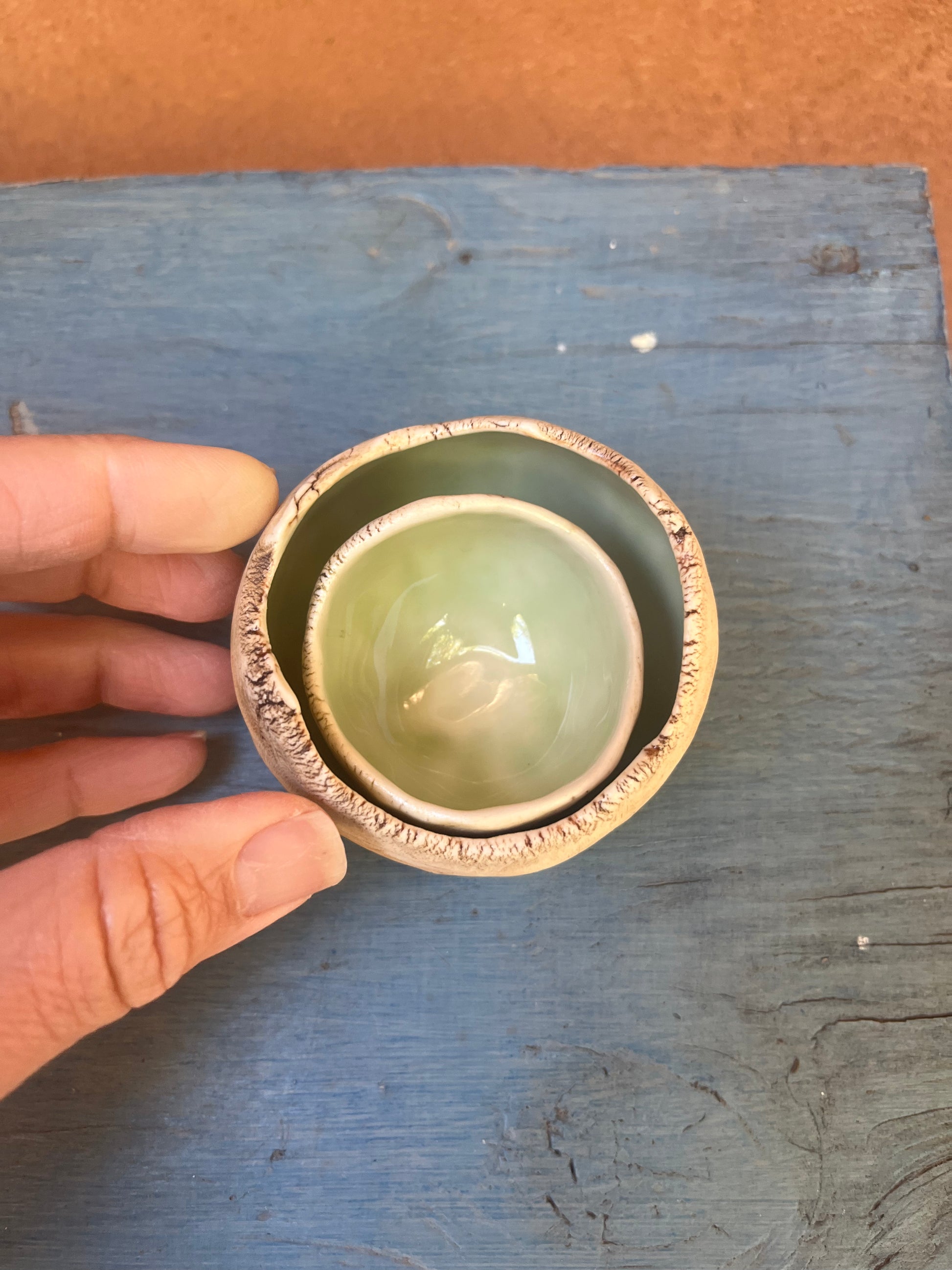 “In my ceramic work, I am drawn to explore texture, pattern, color, and form—and the interplay between them. The porcelain I use is smooth and delicate, yet finicky by nature. It has the potential to show every mark made—whether intentional or not. I choose to work in porcelain for its ability to accentuate my work unlike any other clay. Pairing it with ceramic stains and translucent glazes, it allows me to highlight the surfaces and forms I feel called to create.”