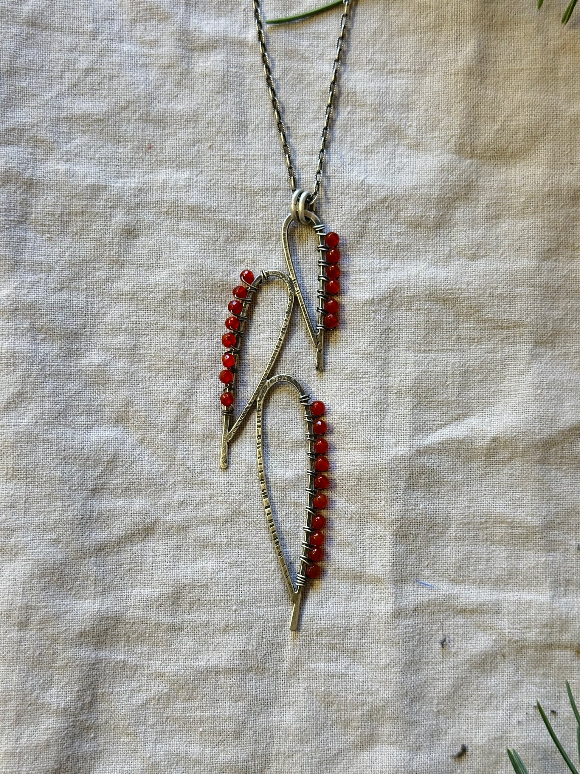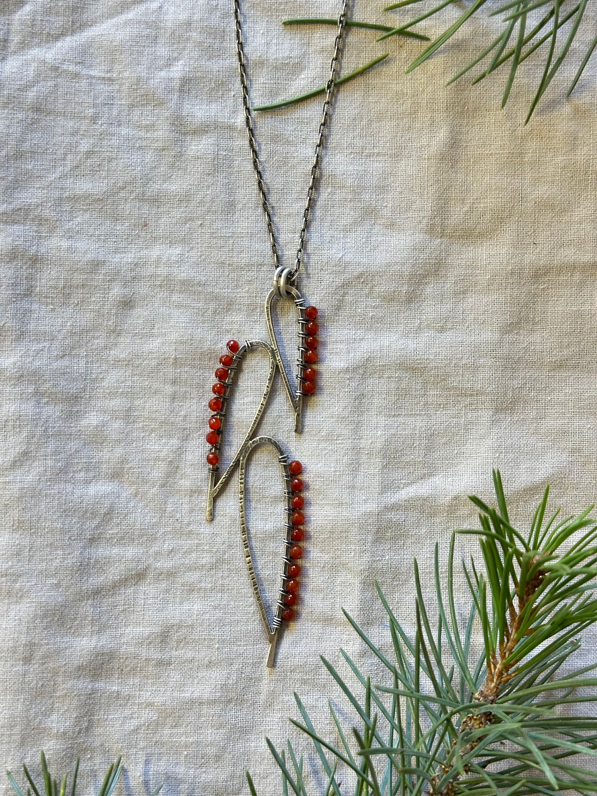 Leaves wrapped with Carnelian beads Pendant Necklace - Long necklace