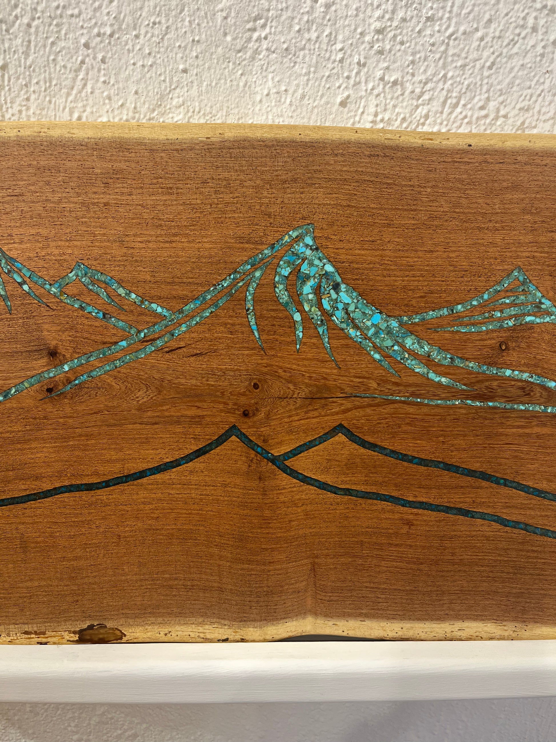 Live Edge Mesquite - with Kingman and Peruvian Turquoise inlay