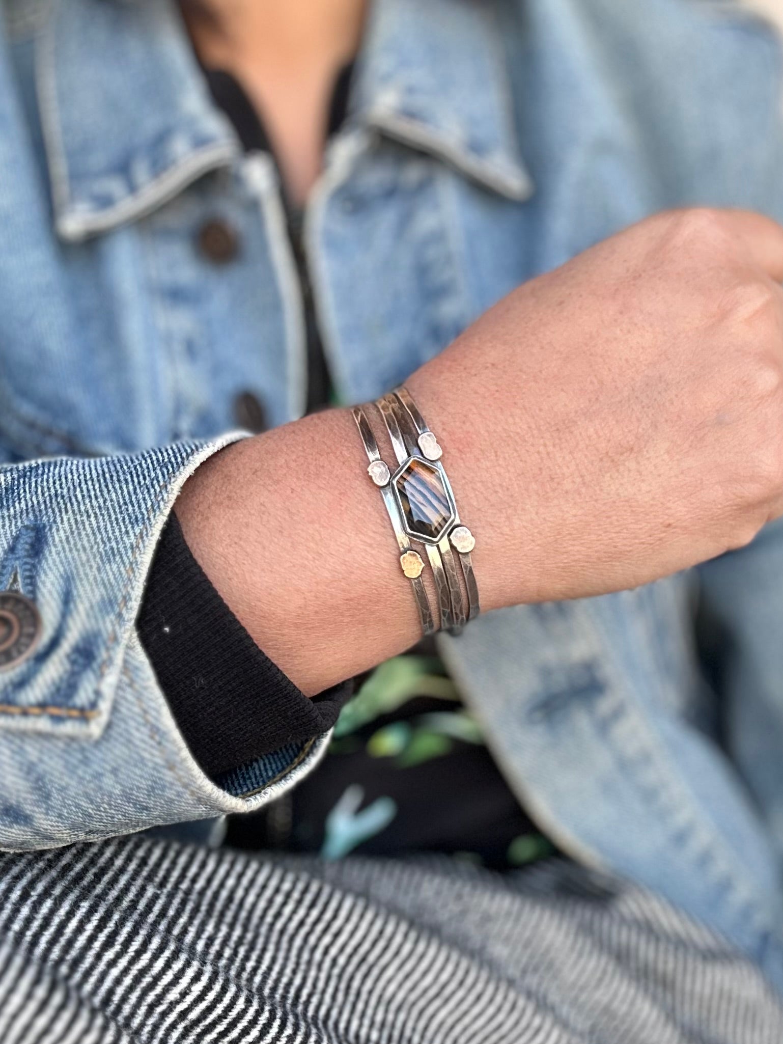 Stacked - Attached Bracelet - Montana Agate - Cuff with Movement - ready to ship