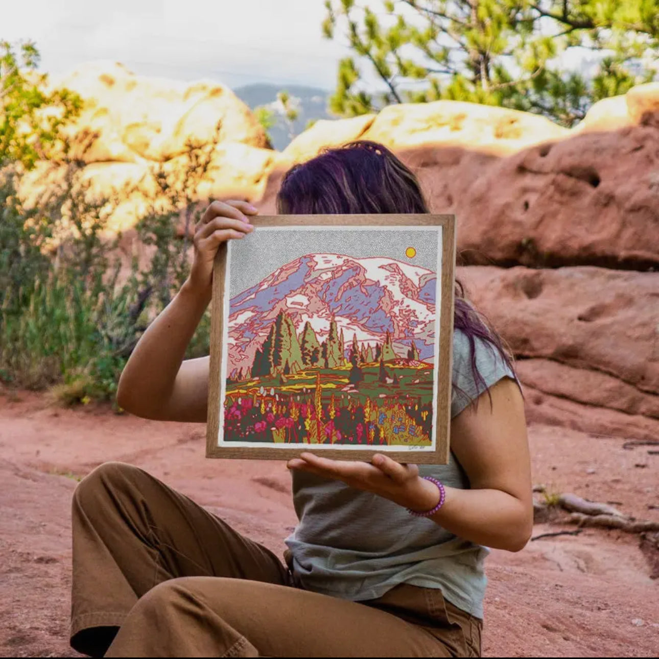 Desert Mountain 18 x 18 inch square print. Digitally printed on high quality, pulpy off-white card stock paper. Can be purchased unframed or in a solid wood frame.