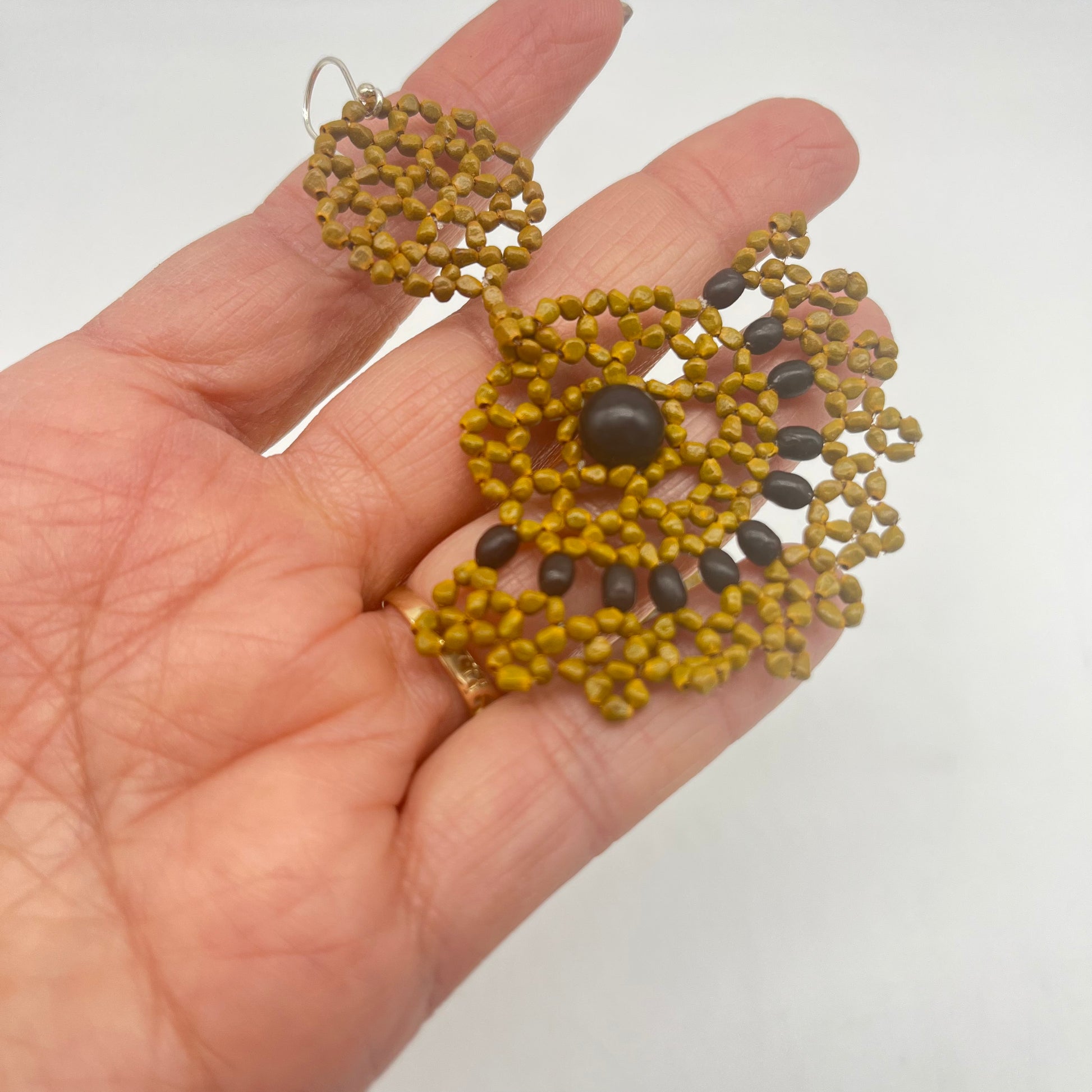 Measures: 17.5” longitude arounf the neck, 5” weaved seeds setting.
