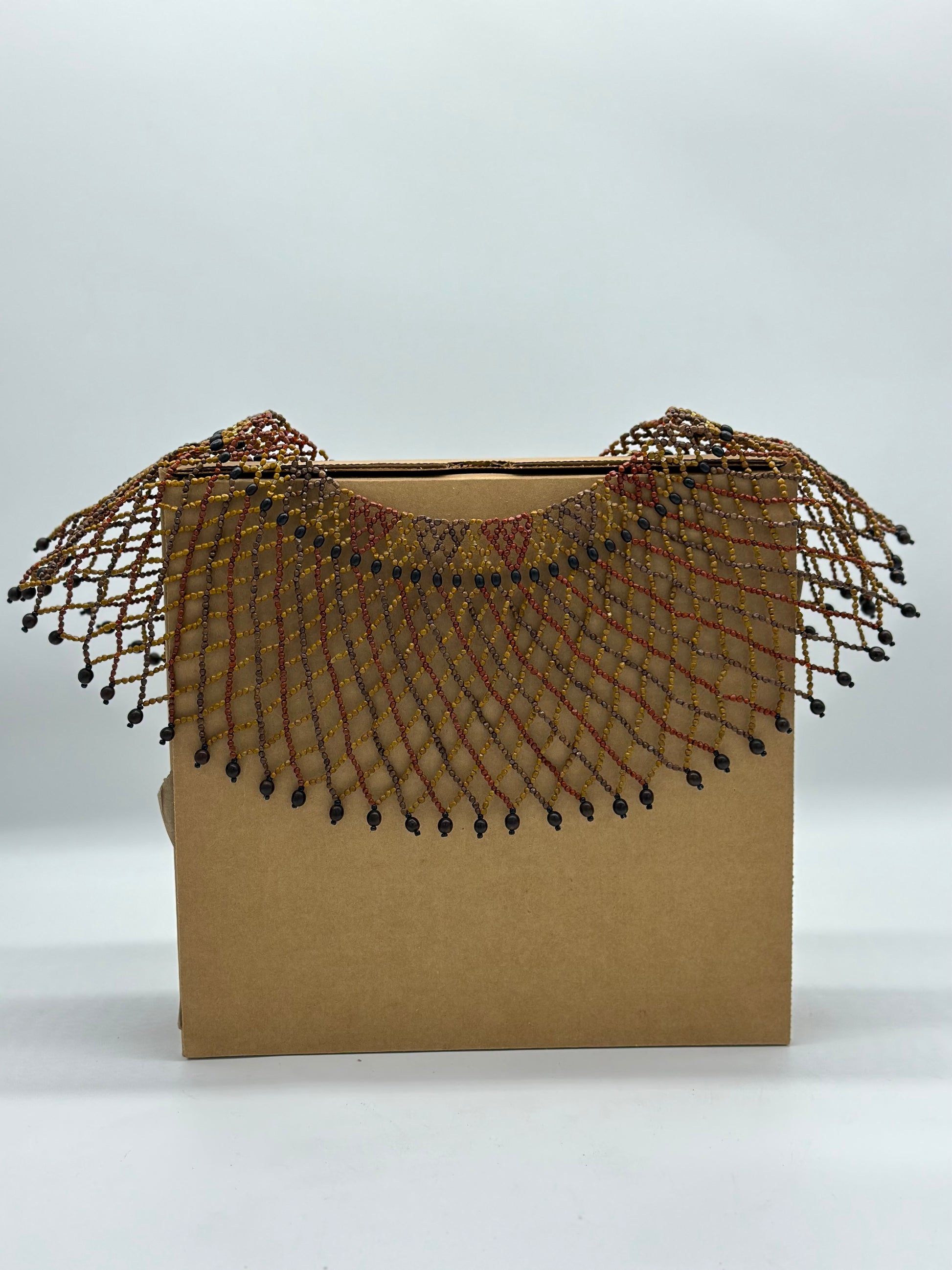Measures: 17.5” longitude arounf the neck, 5” weaved seeds setting.