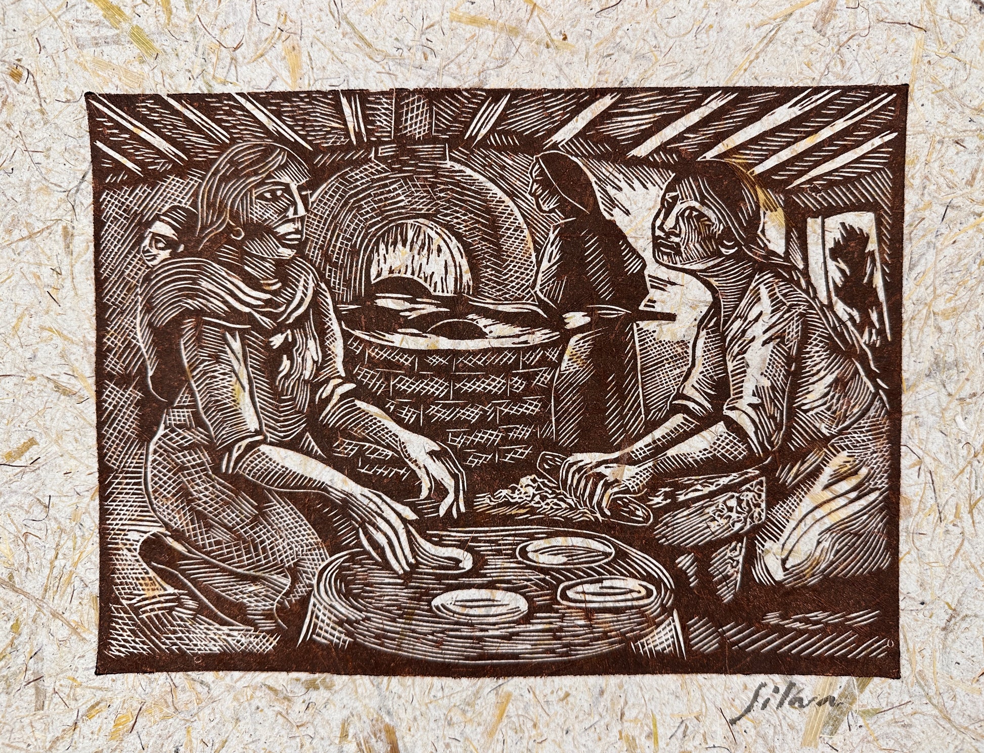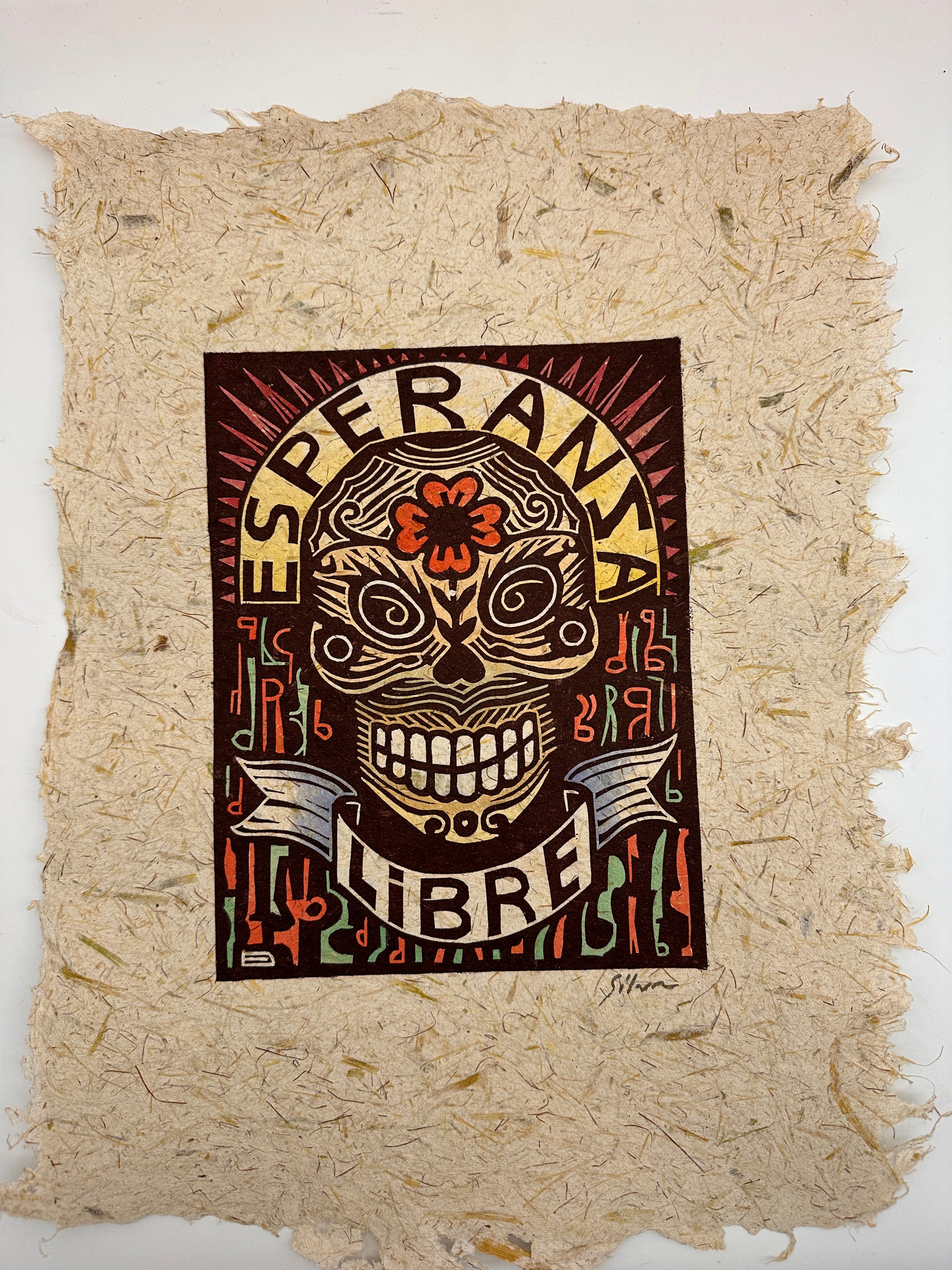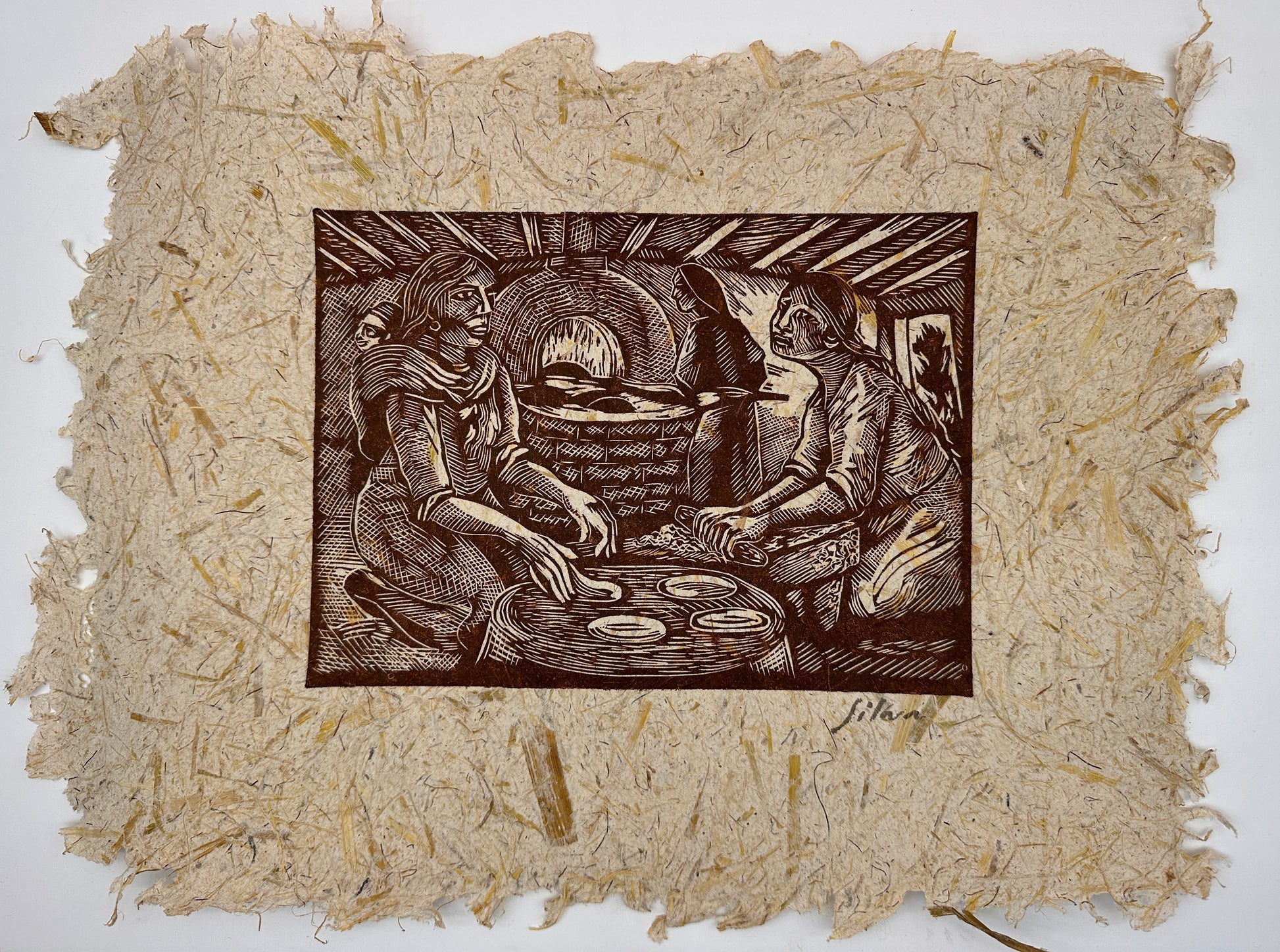 Lino Print ~ corn husk artisanal paper - 13” x 18”