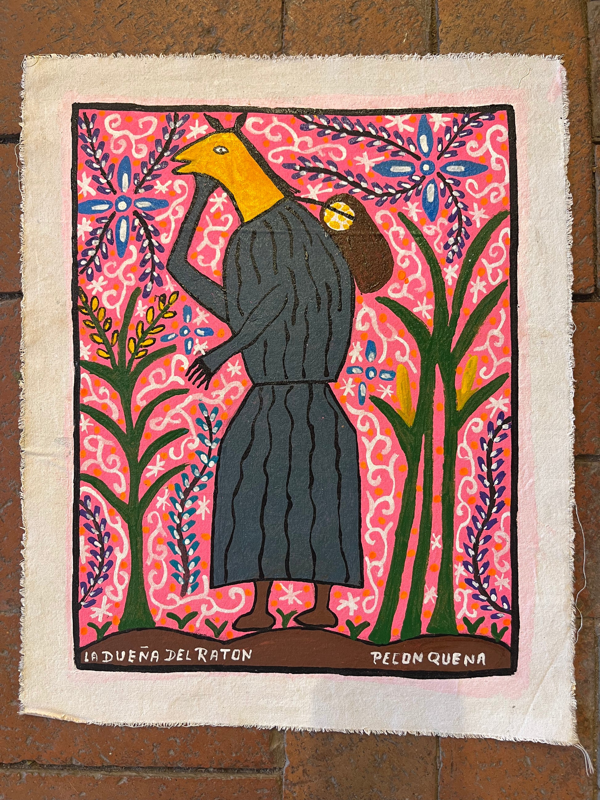 She is gifted with different artistic skills such as ceramics, embroidery, carving, and obviously painting. In all her artistic works she represents animals and plants with their spirits. Called yoshin (an evil spirit) and ibo (a good spirit). Through her paintings Lastenia has a vision to show that each plant and animal has a protector to safeguard the forest.