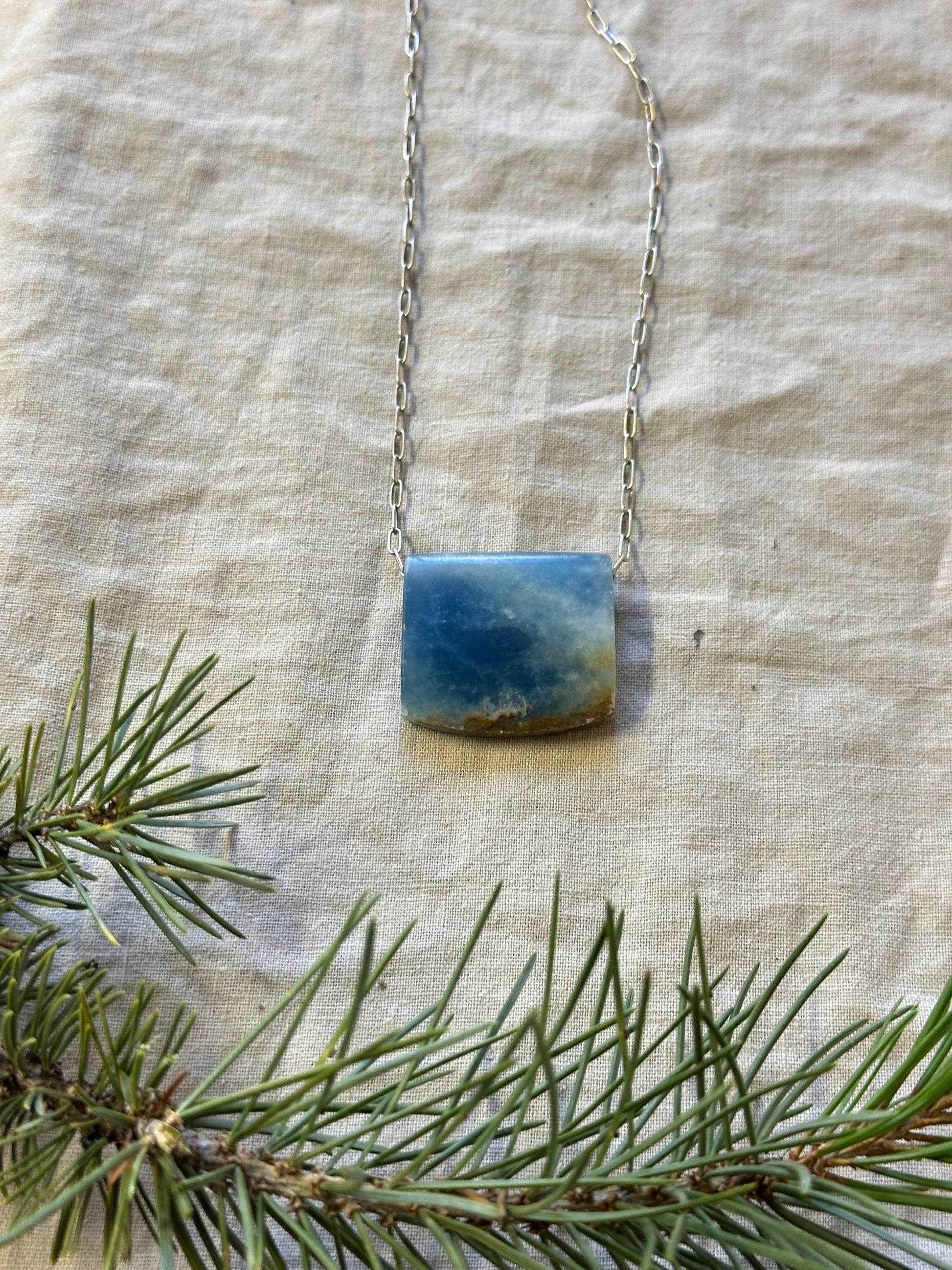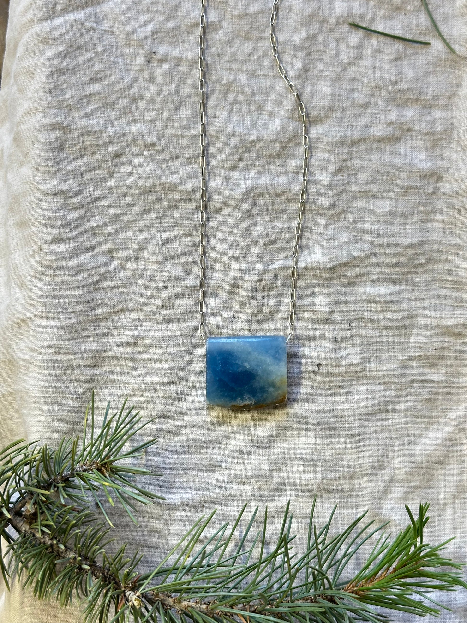 Long paperclip chain necklace with a piece of Cielo Onyx hanging. This necklace is great to layer.