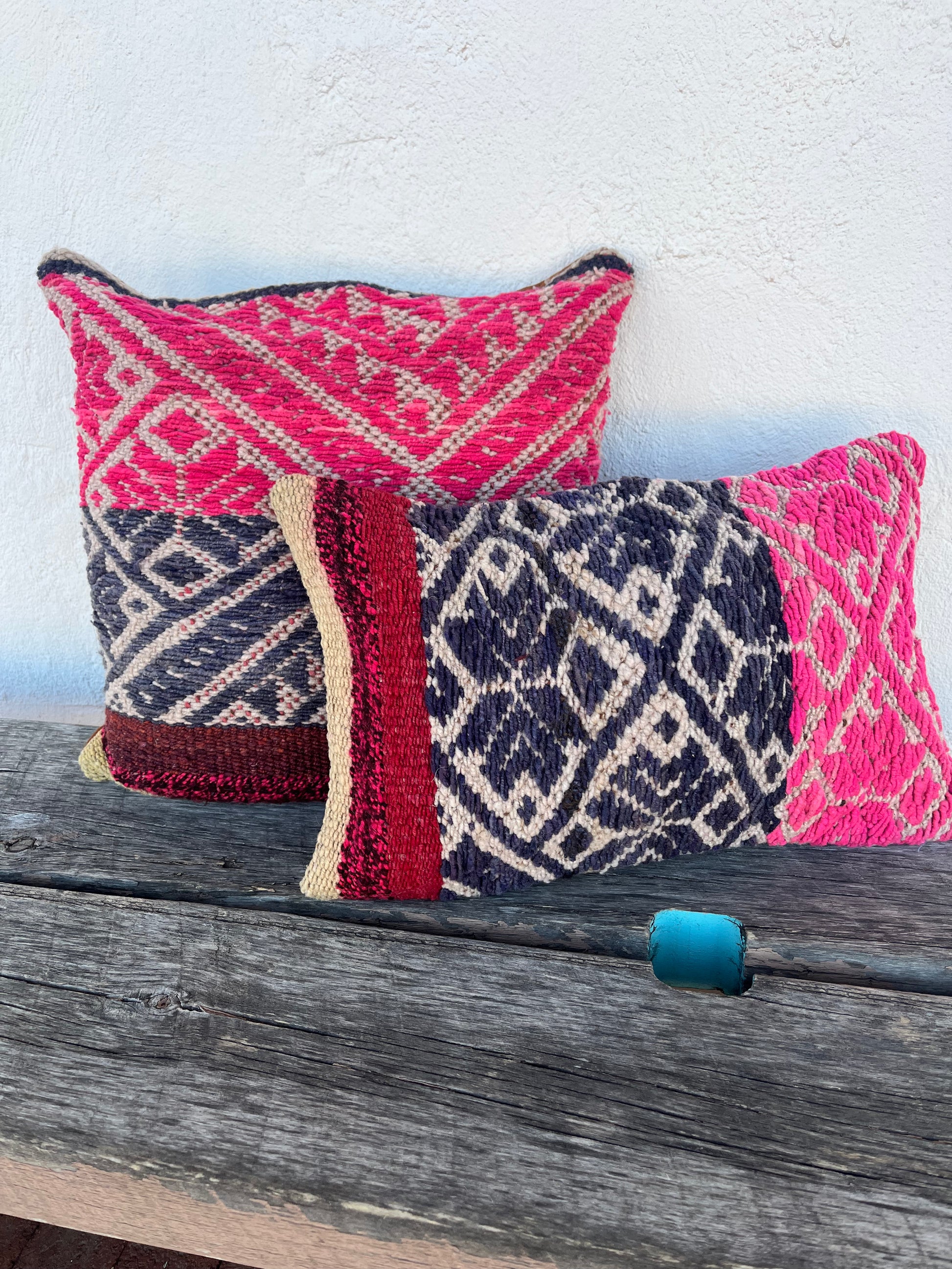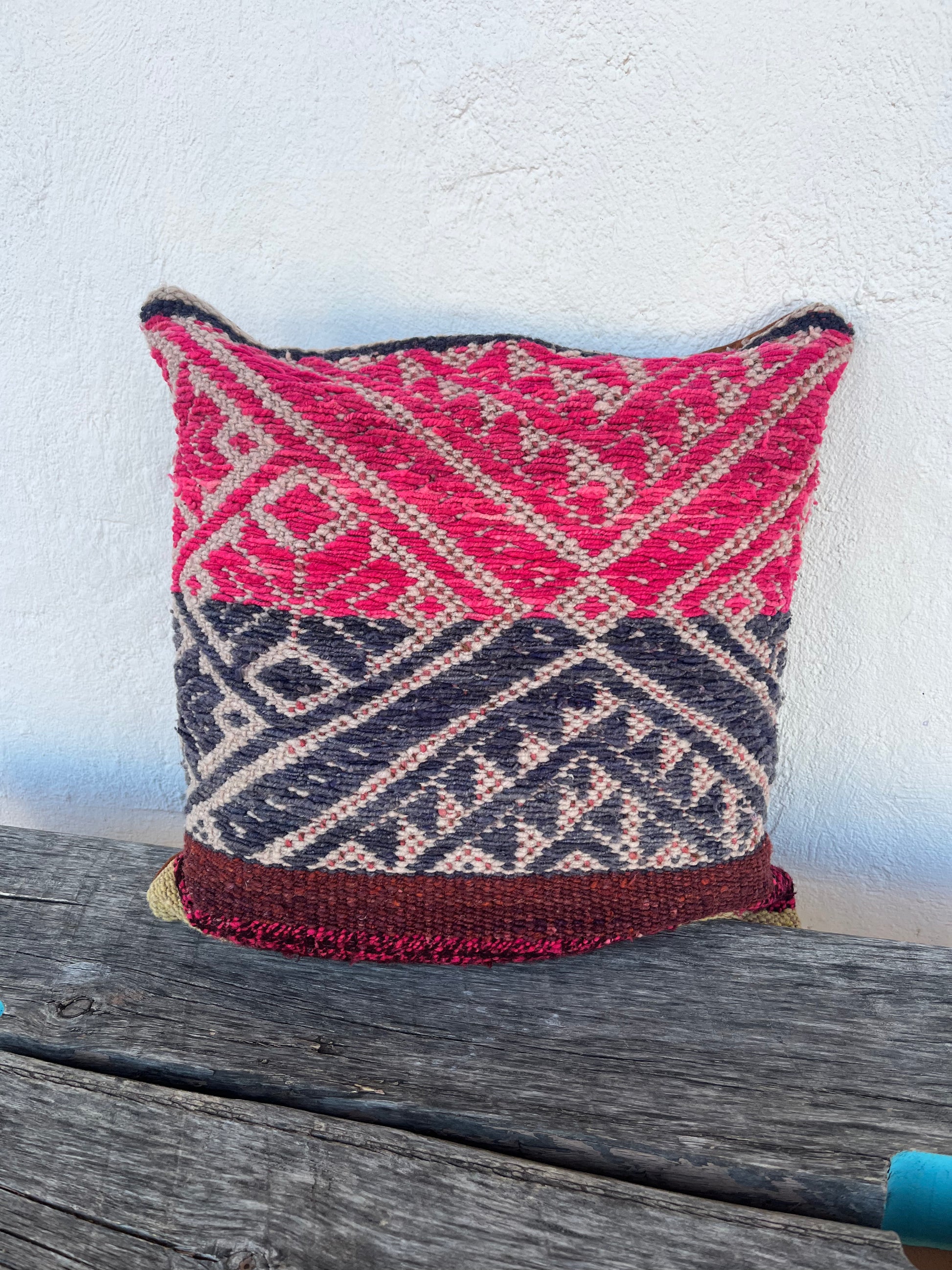 Pillowcase made from an antique, hand woven wool frasada that has earned a unique patina from years of use. Solid back cream colored.