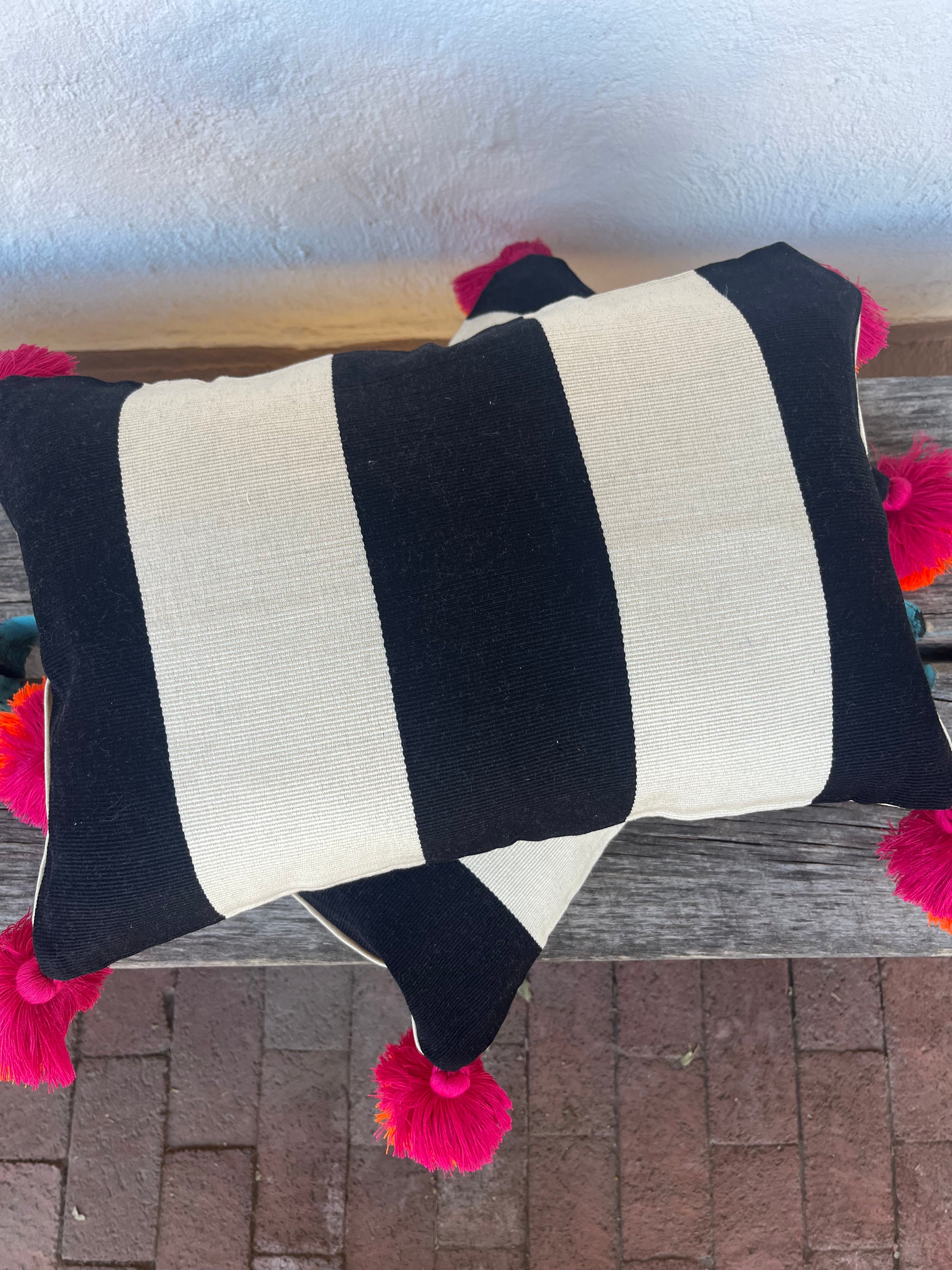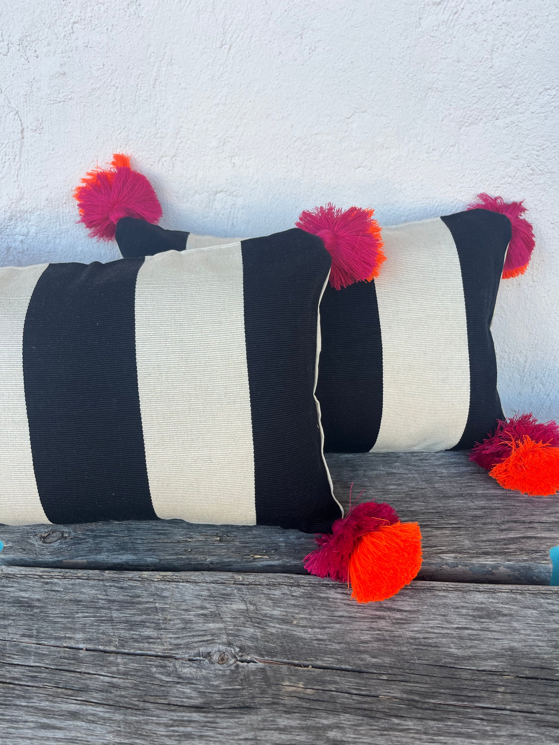 Fabric Content - pima cotton pillow, pompoms are recycled polyester