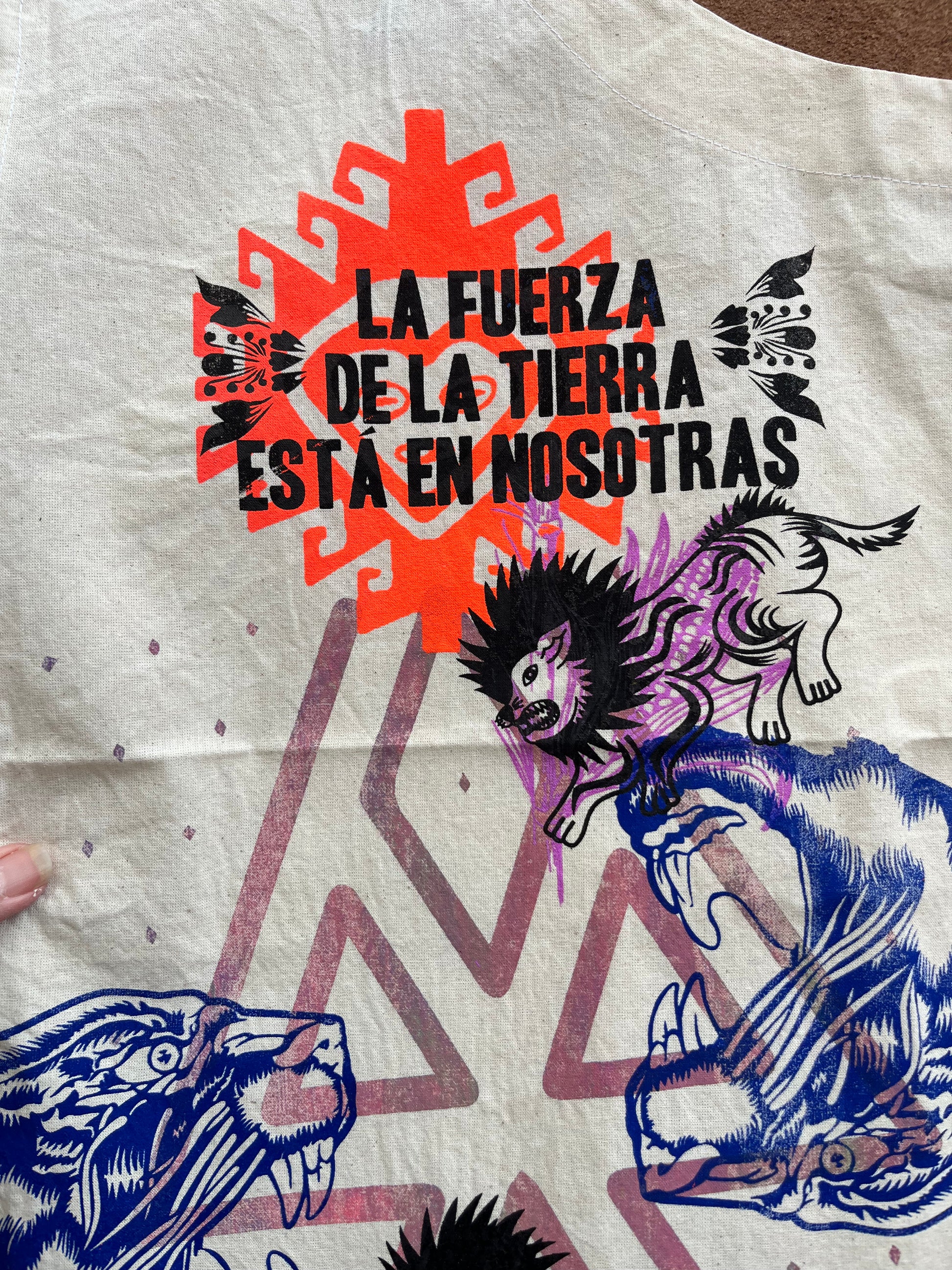 Amapolay uses screen printing as a platform to elevate the struggles of Latin America's indigenous communities and resistance to colonialism. Their work draws on the popular art of Lima's working class neighborhoods and is heavily influenced by the painting style and symbology brought by Andean and Amazonian migrants. The juxtaposition of traditional motifs within urban settings is commentary and celebration of Peru's multicultural heritage, interpreted in their signature electric color.