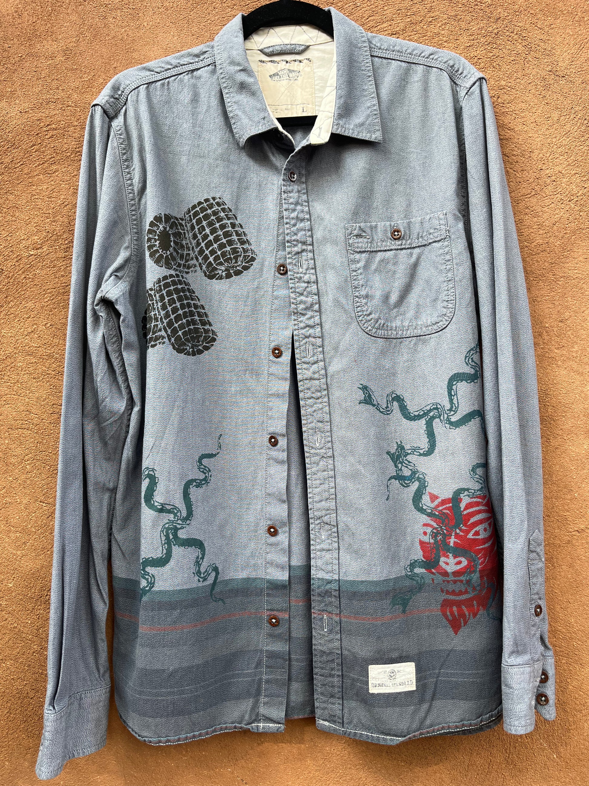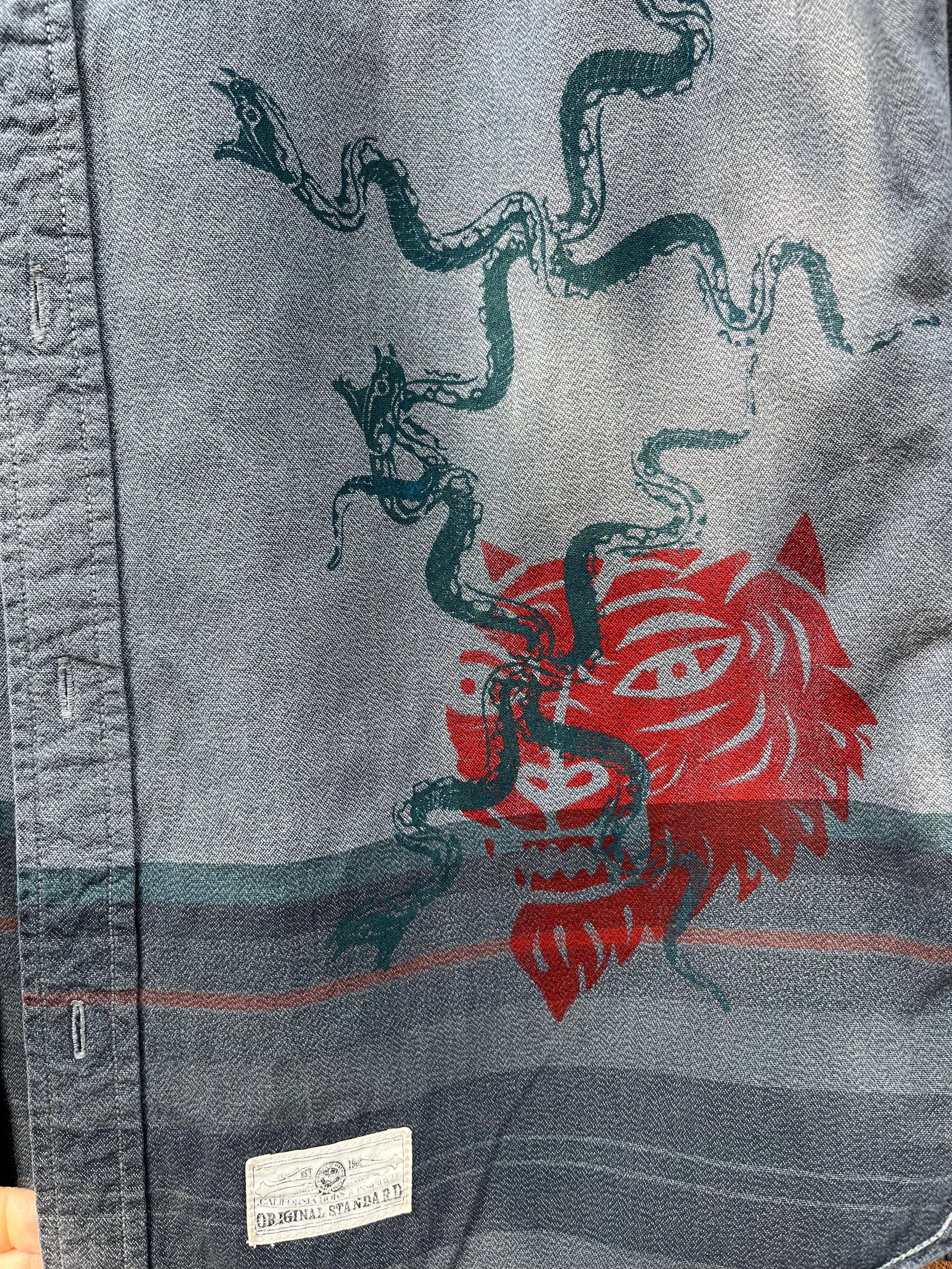 Screenprinted Collared Shirt ~ upcycled ~ Large