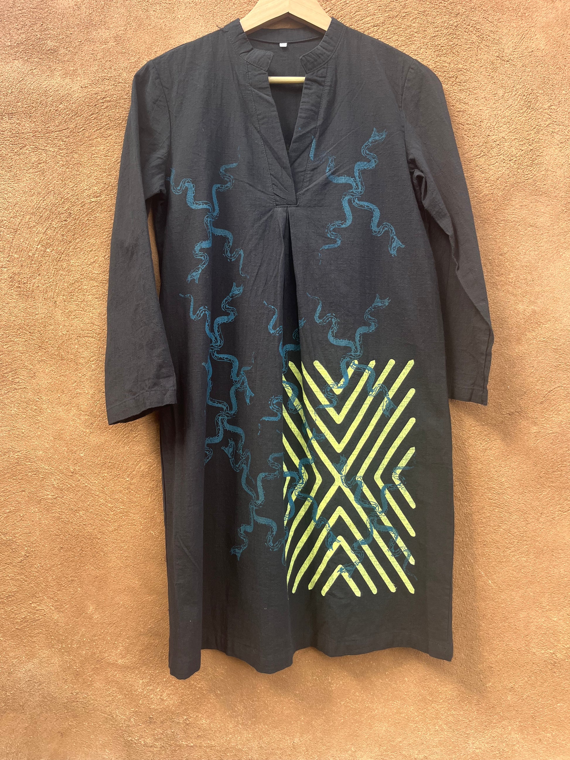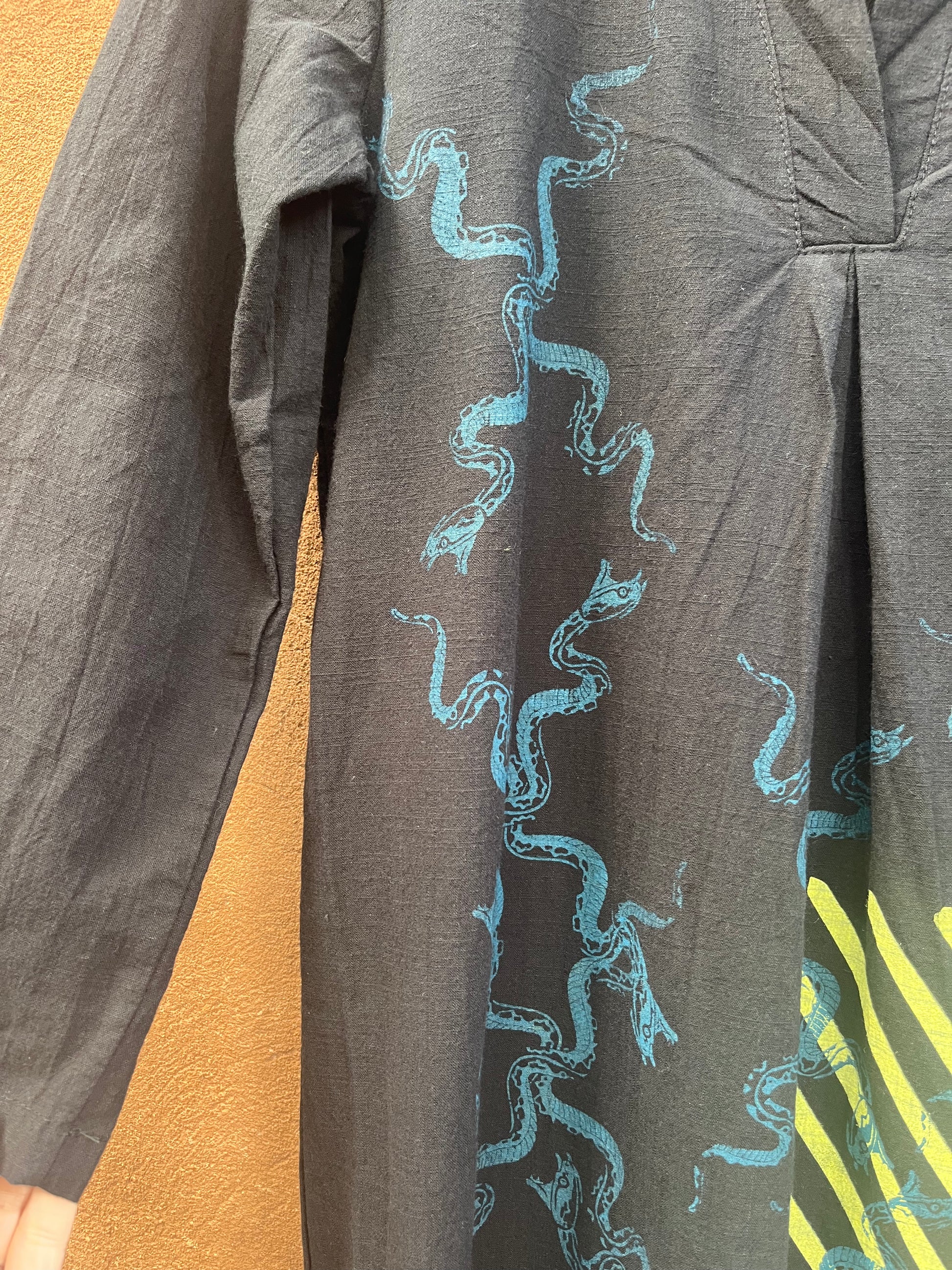 Screenprinted Tunic Black Shirt Dress ~ upcycled ~ Medium