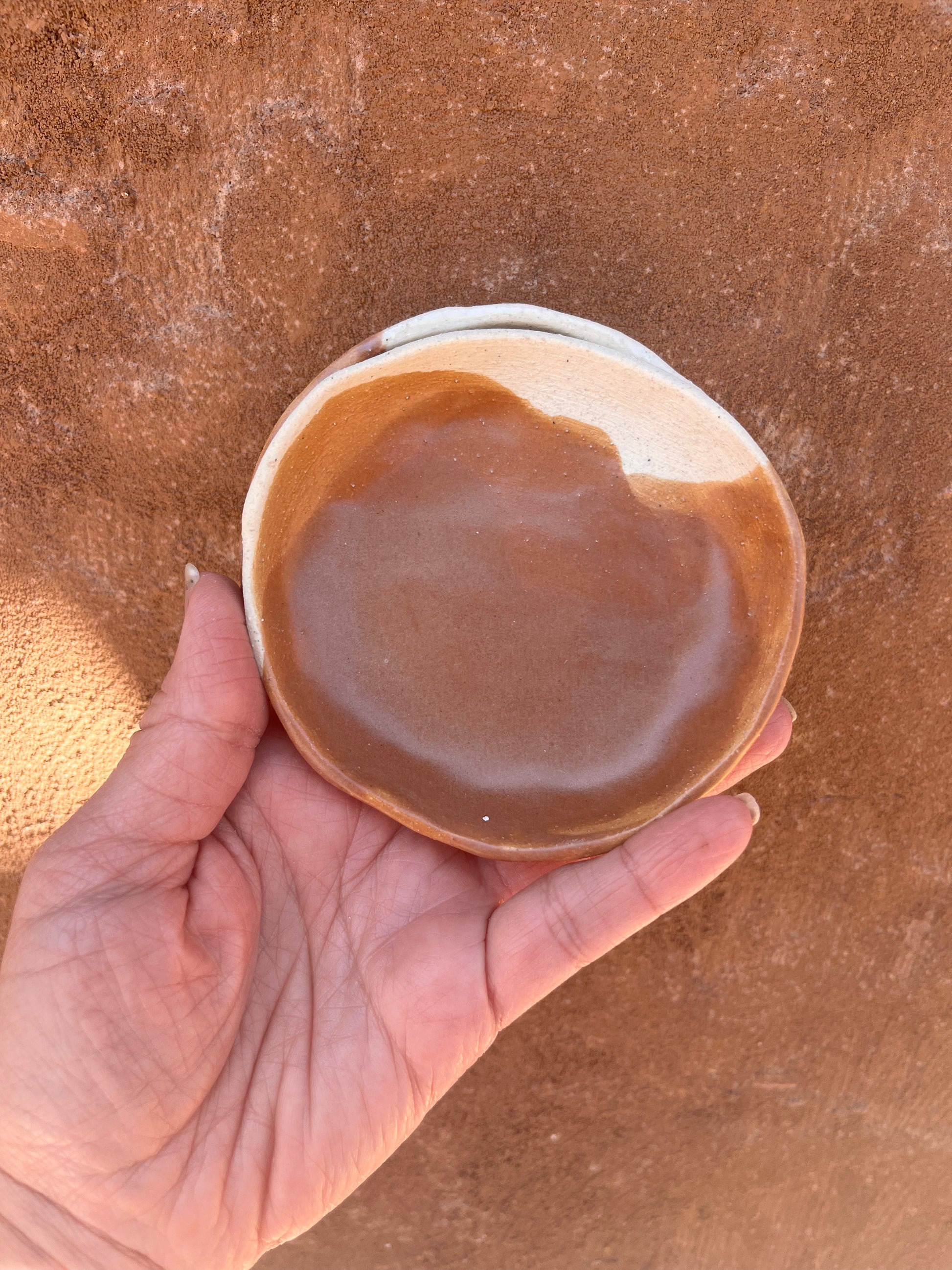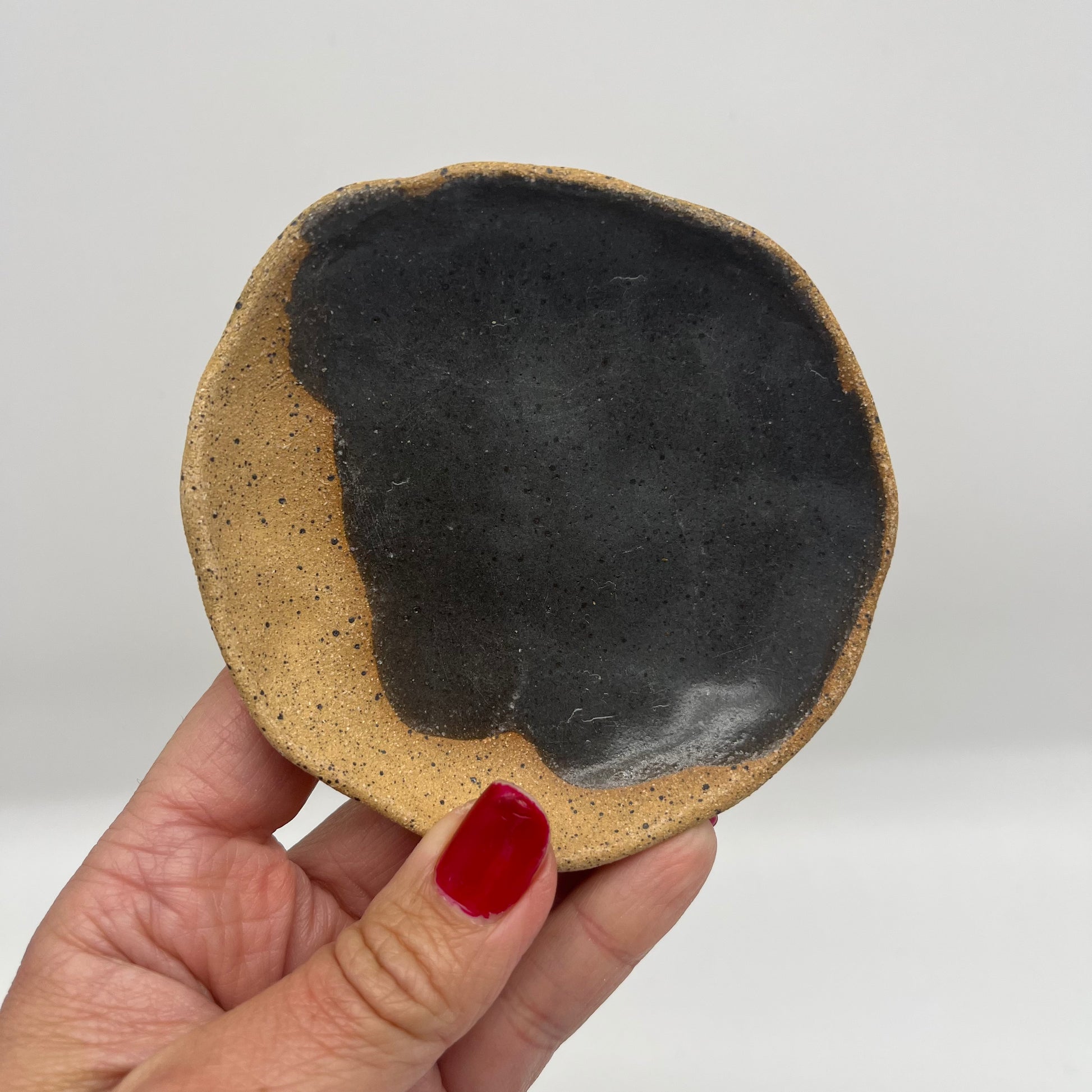 Off-white glaze on speckled clay plate. Perfect as a catchall little dish with an organic flare.