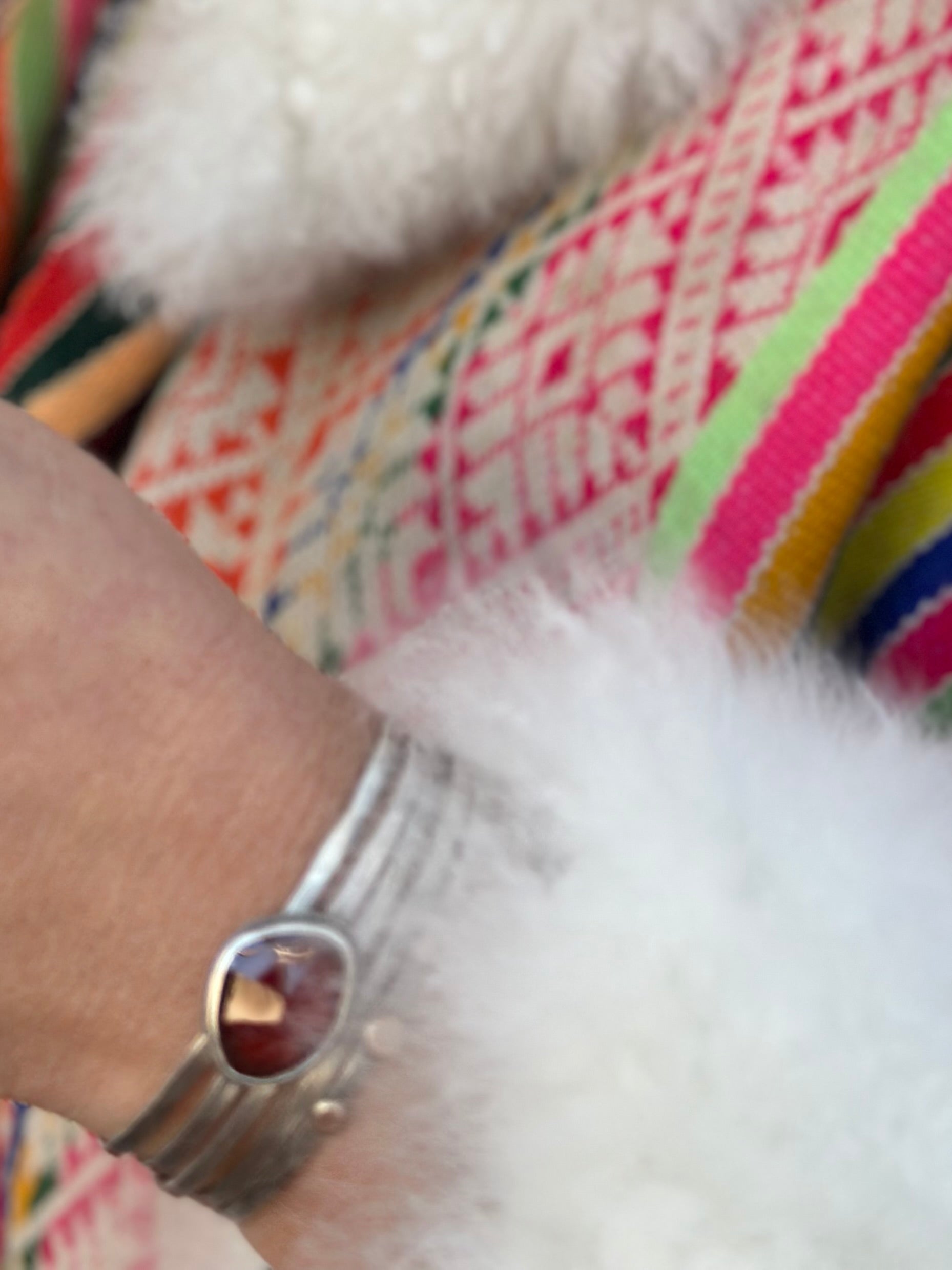This cuff is completely designed and handmade by me in my adobe studio in Santa Fe, New Mexico.