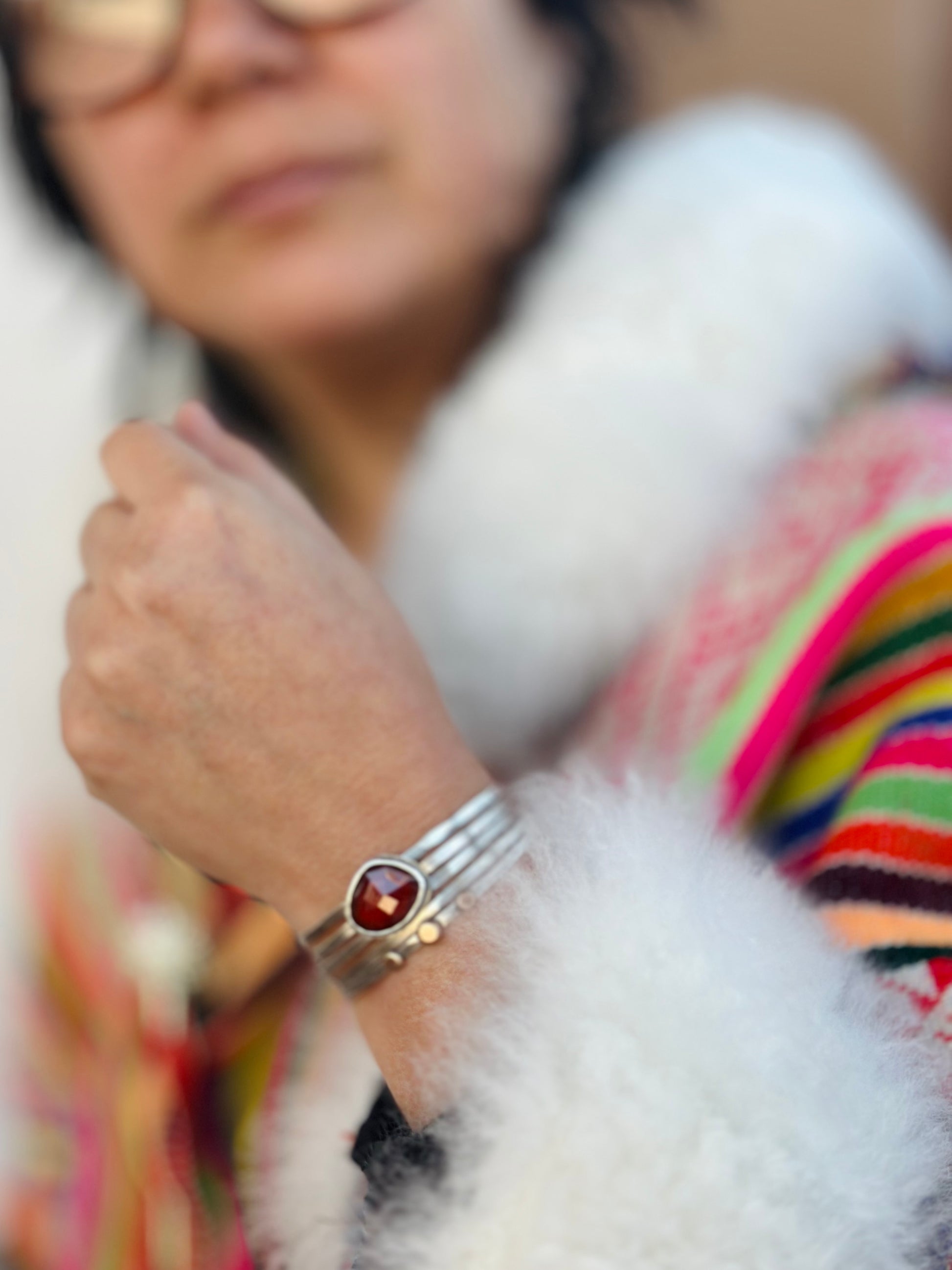 Stacked - Attached Bracelet - Hessonite Garnet - Cuff with Movement - ready to ship