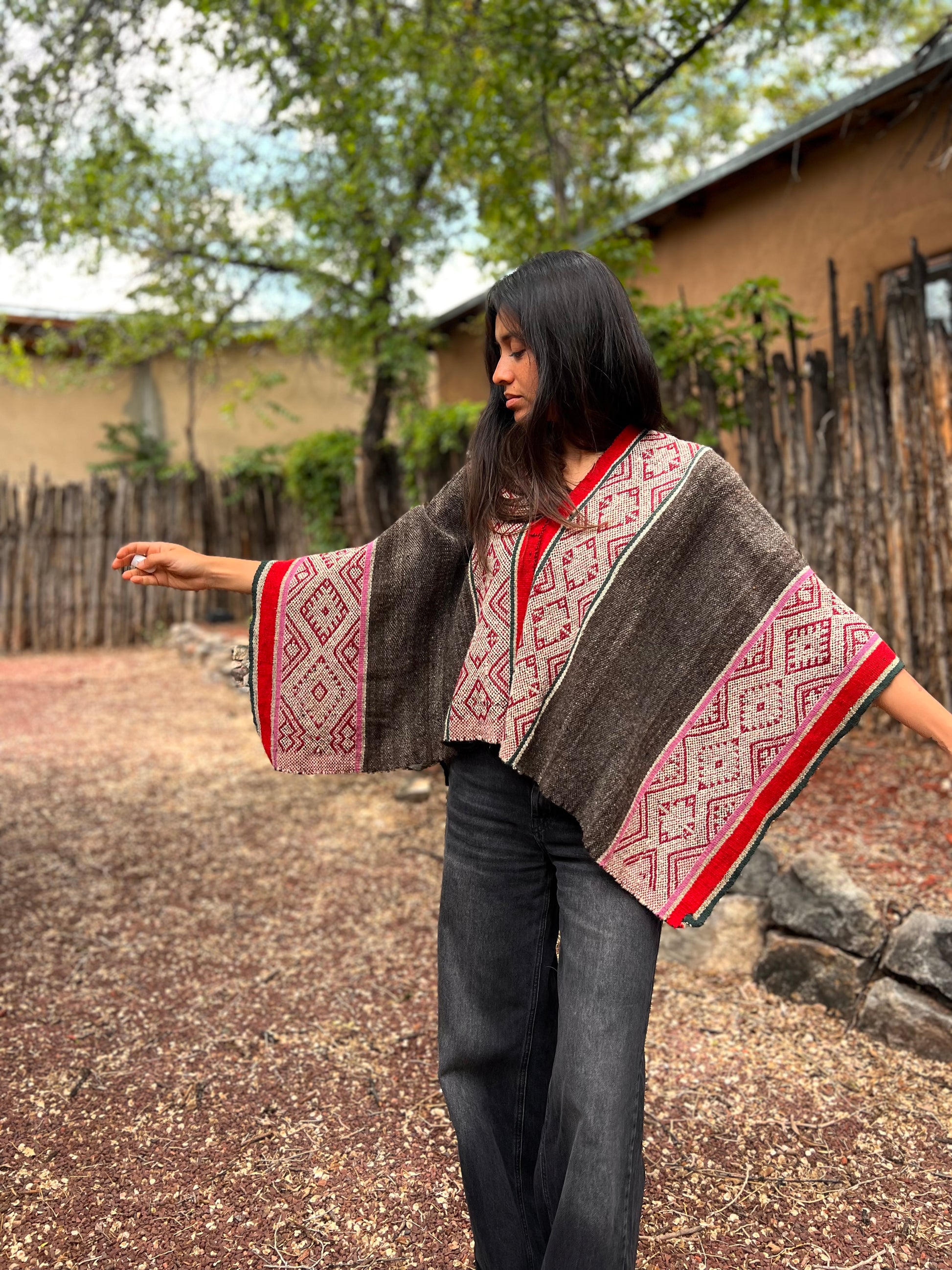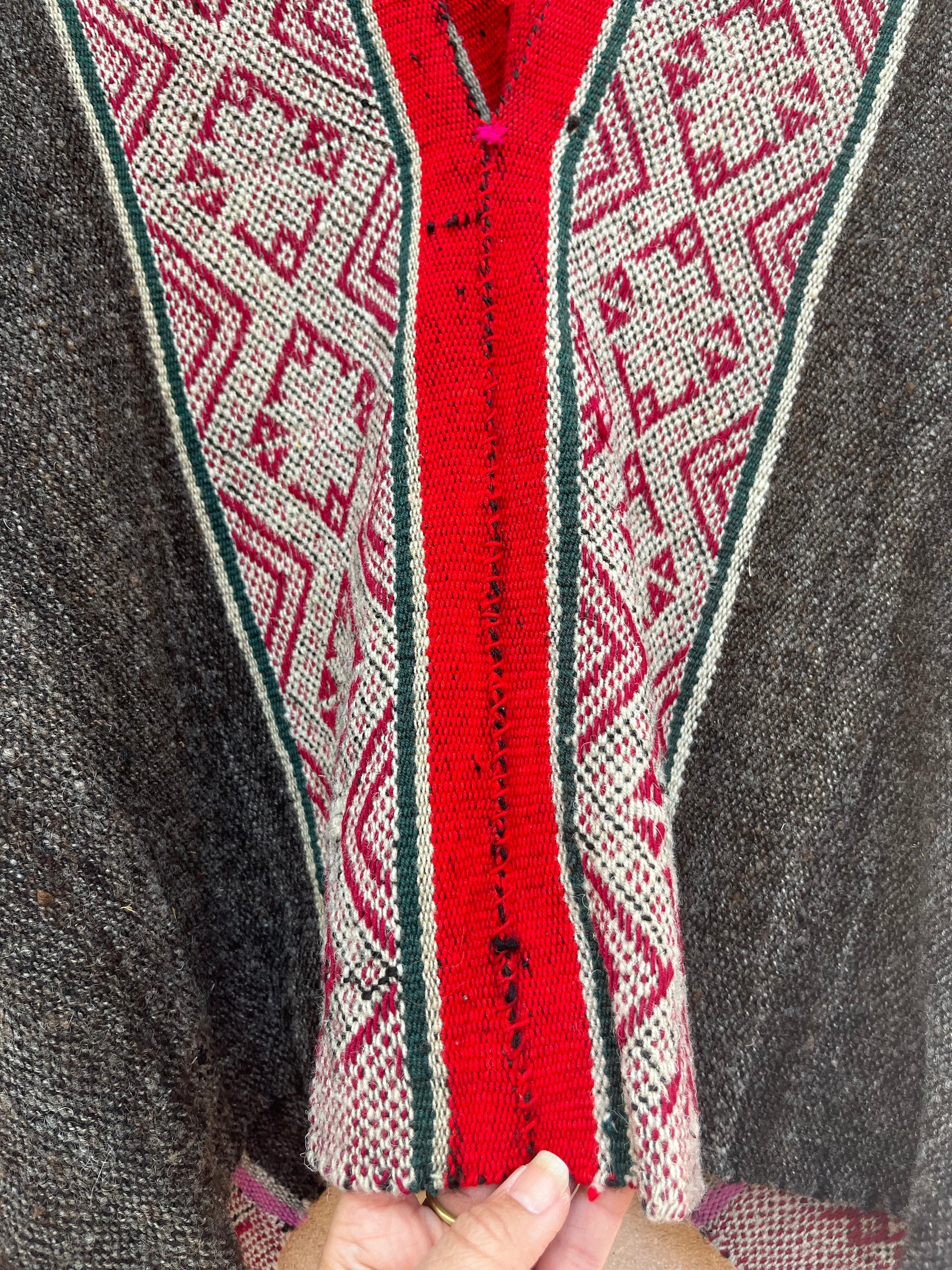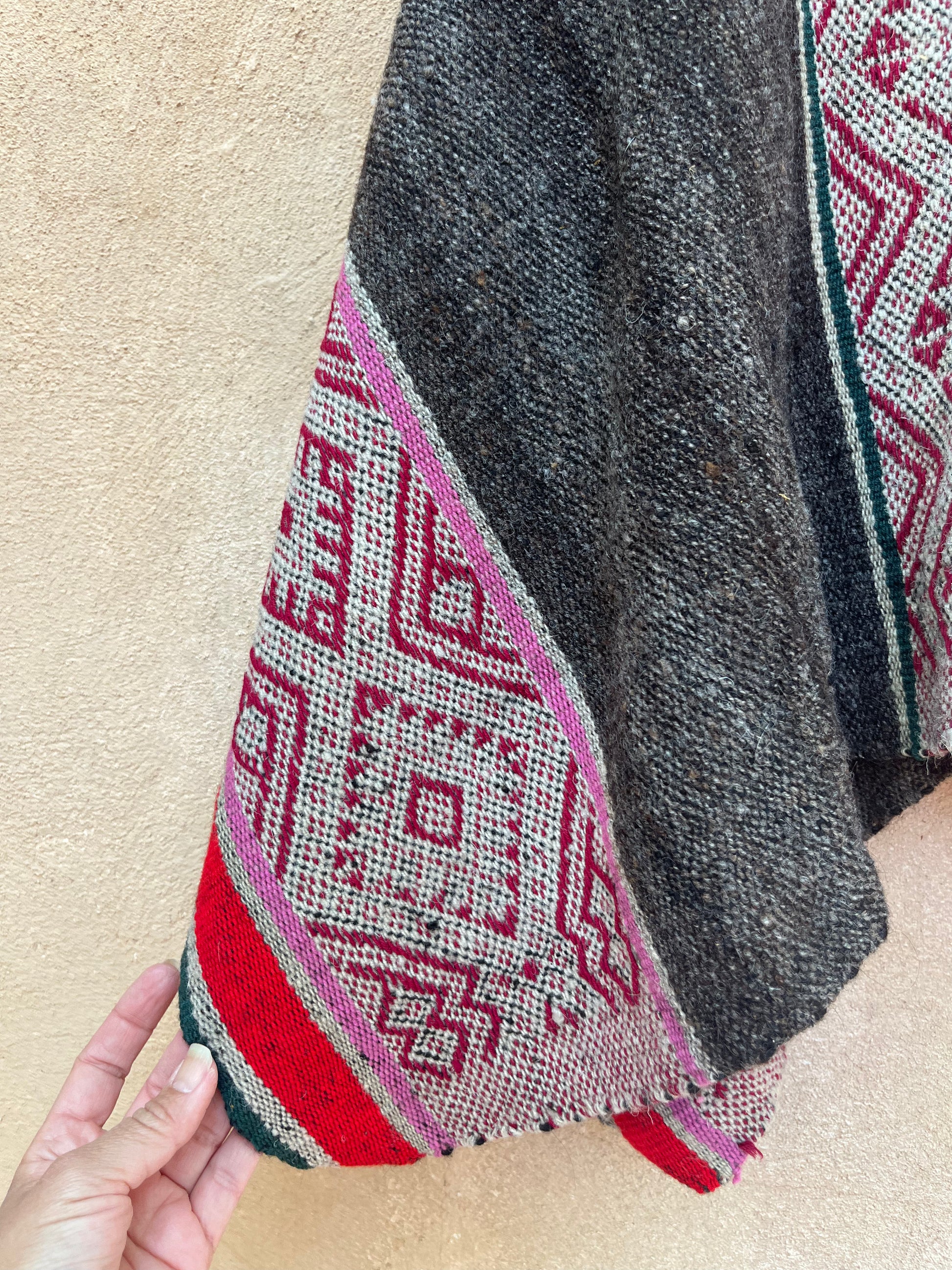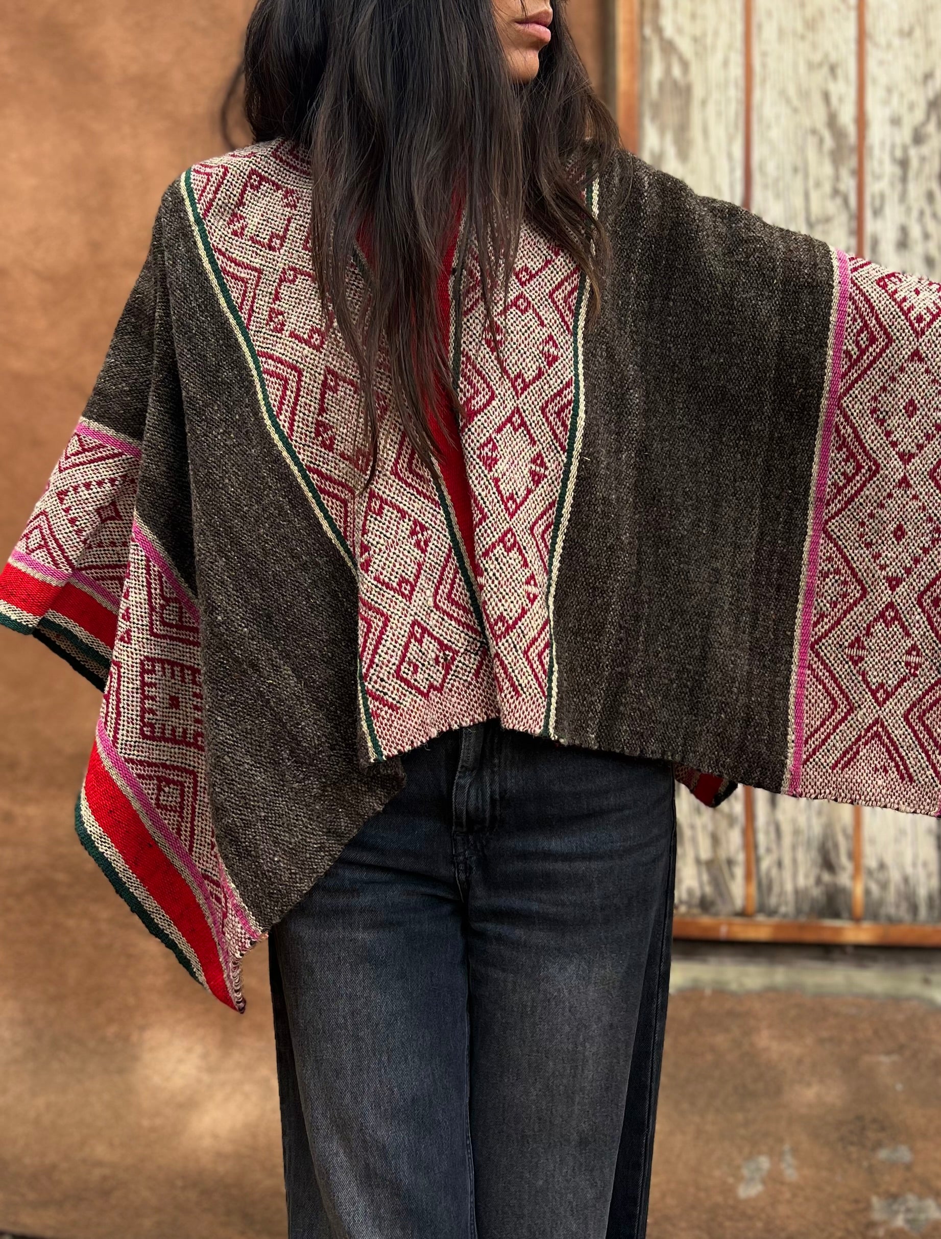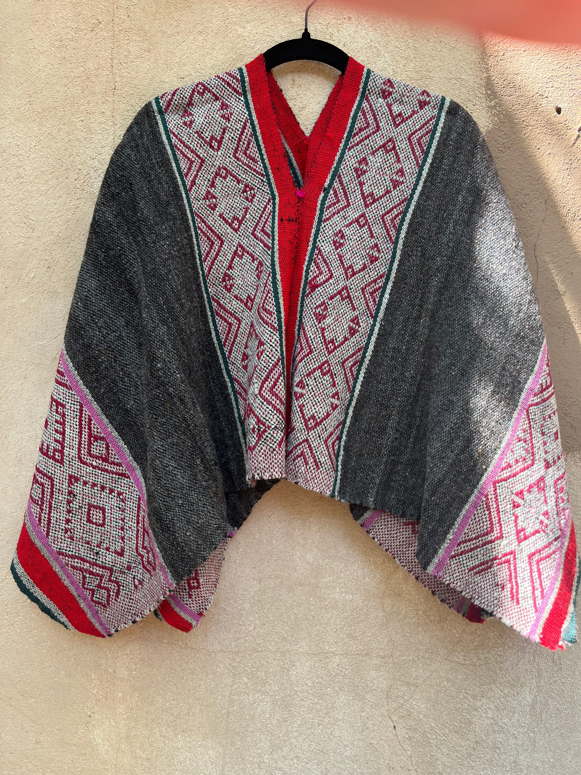This is an antique poncho handmade in Cusco from sheep wool, hand woven that has earned a unique patina from years of use.