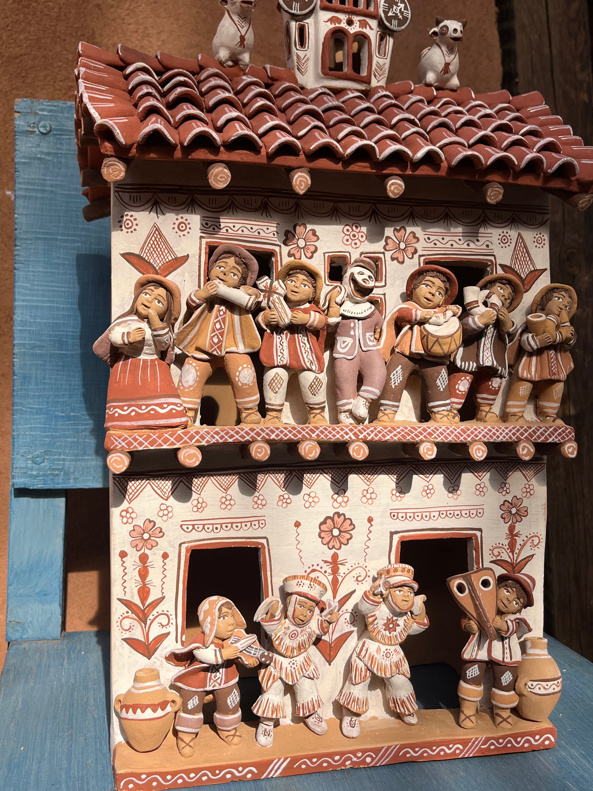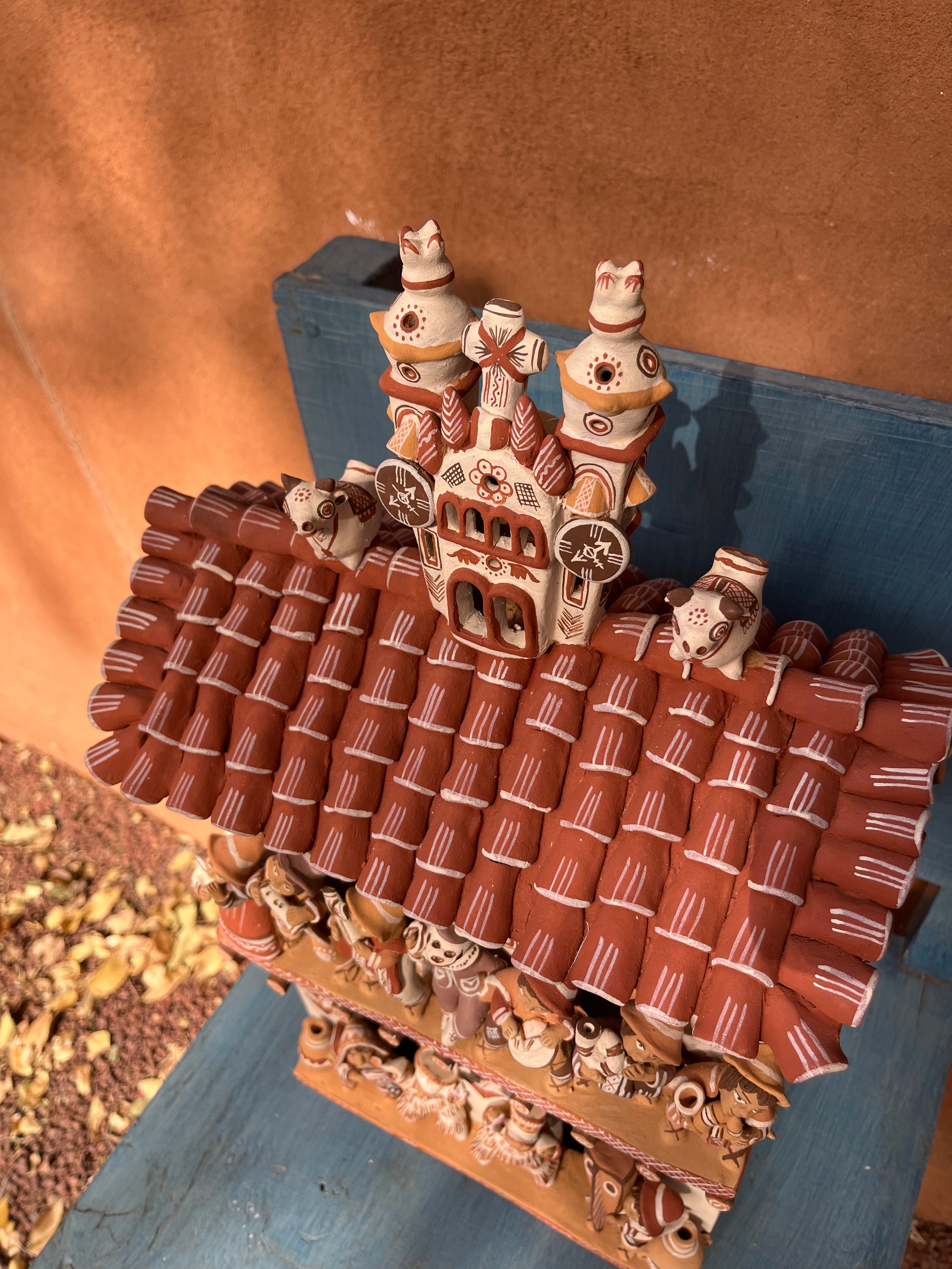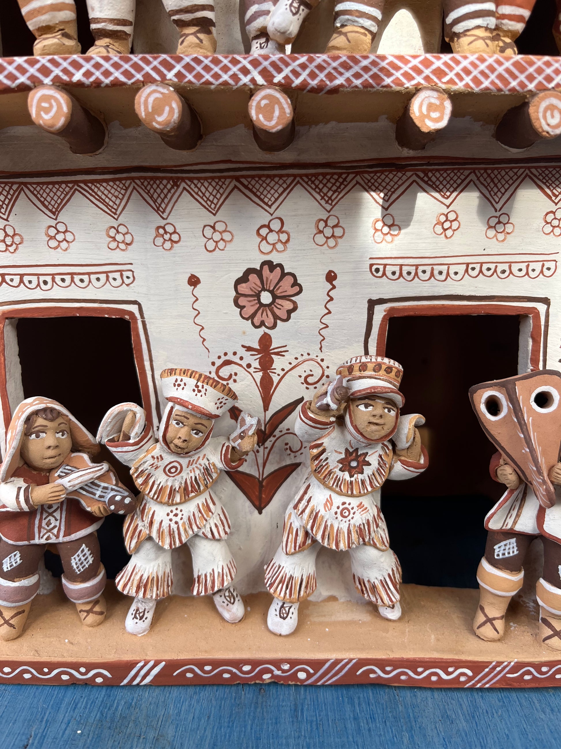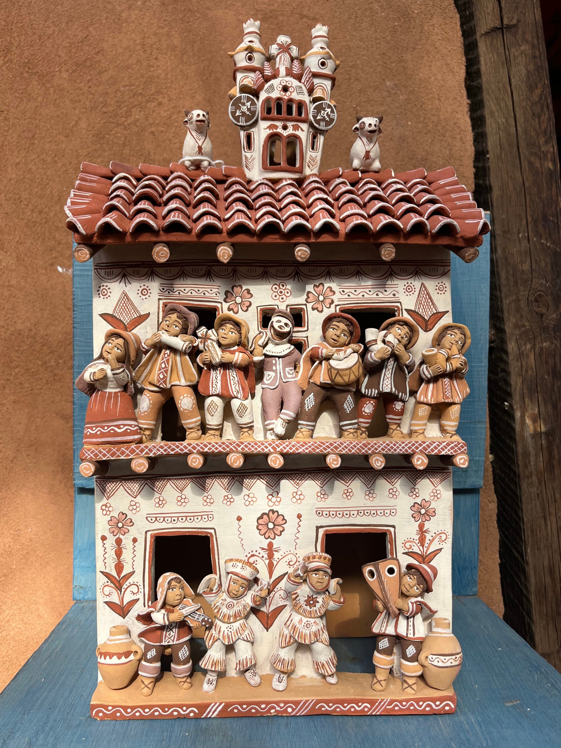 Artemio adorns his ceramics- typically rendered in earthy tones of beige, deep coral, and chocolate brown- with traditional iconography typical of the region.