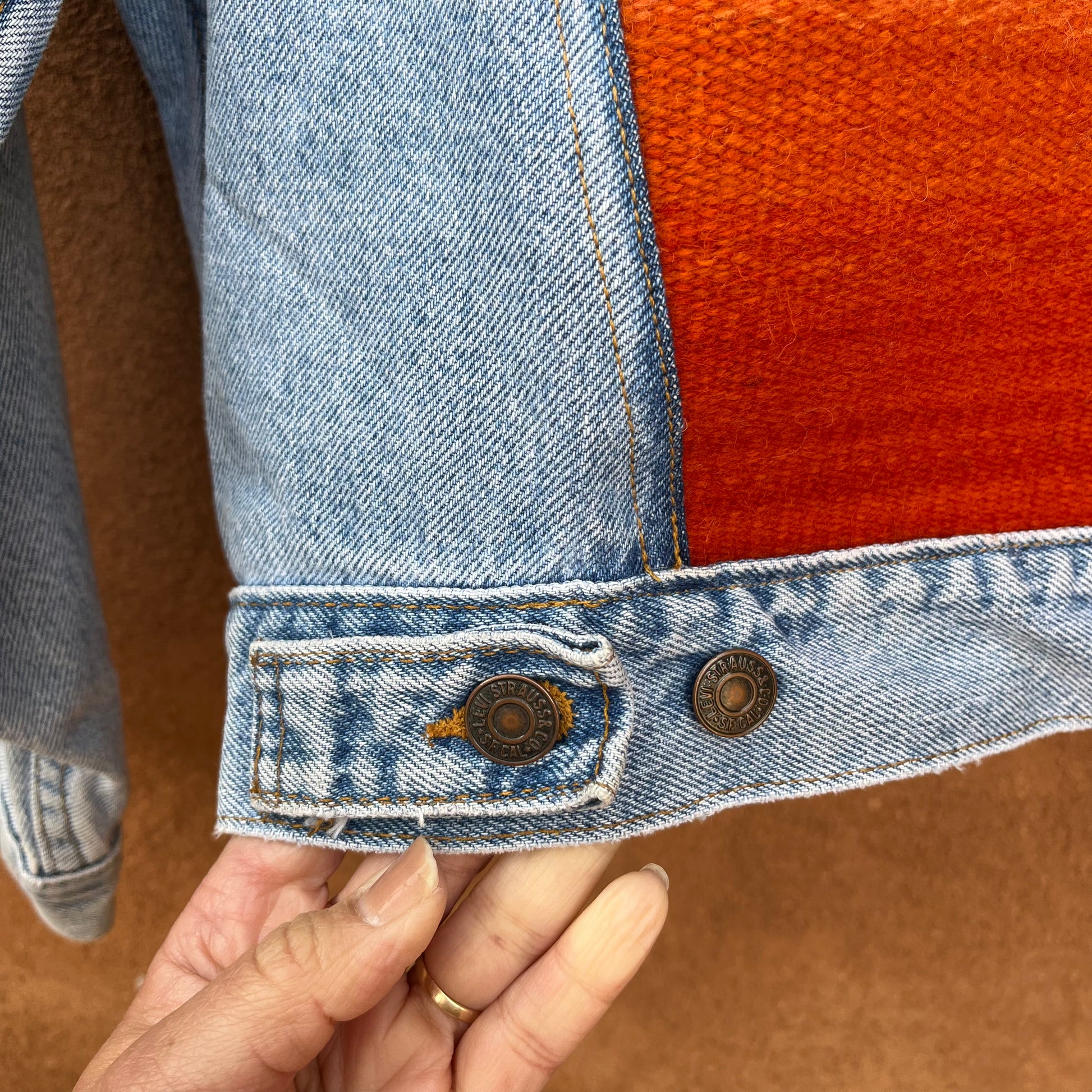 Second-Hand Levi denim jacket with an original handwoven back panel.